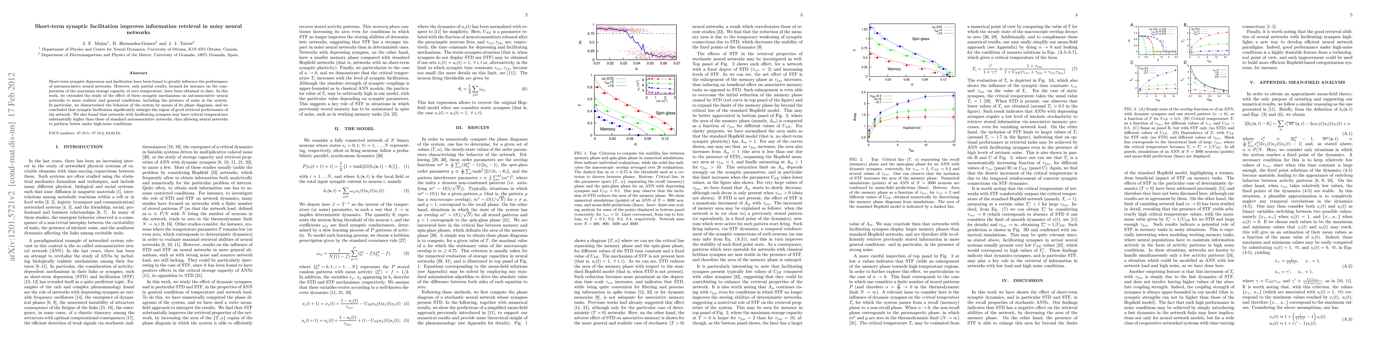 This paper investigates how short-term synaptic facilitation enhances information retrieval in autoassociative neural networks under noisy conditions. It finds that synaptic facilitation significantly improves network performance and increases critical temperatures, allowing better functioning in high-noise environments.