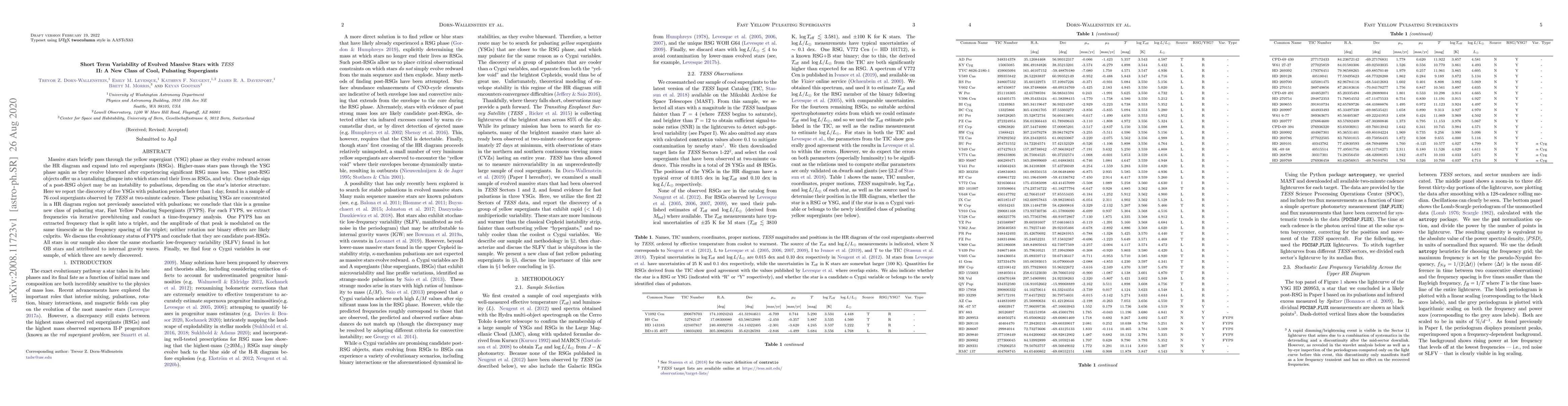 This paper reports the discovery of a new class of pulsating stars, Fast Yellow Pulsating Supergiants (FYPS), identified in a sample of cool supergiants observed by TESS. These FYPS exhibit pulsations with periods shorter than one day and are candidate post-red supergiant stars, offering insights into stellar evolution.
