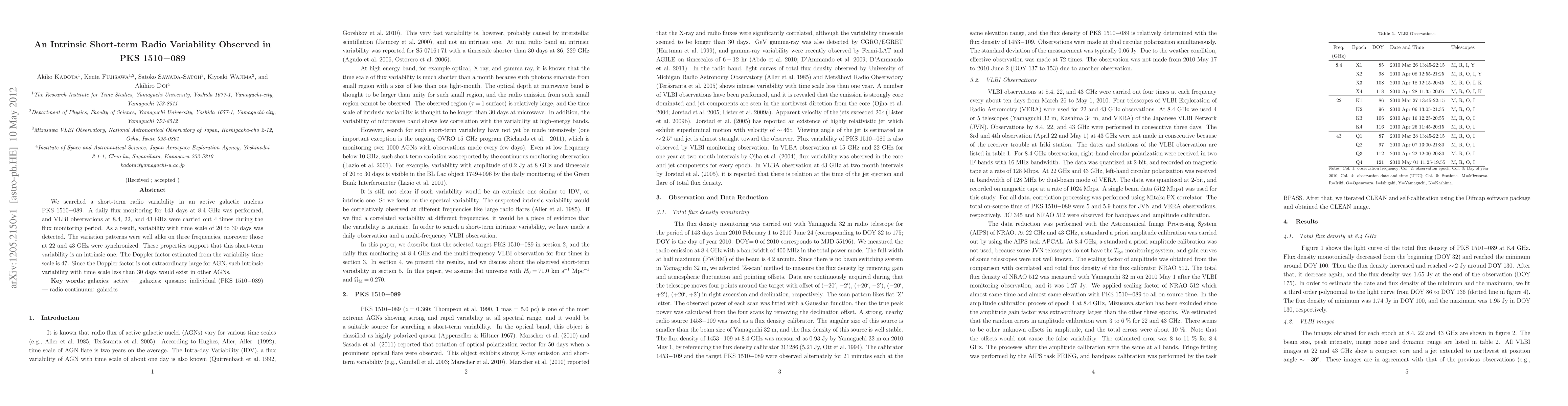 Researchers detected short-term radio variability in PKS 1510-089 with time scales of 20 to 30 days, which suggests an intrinsic origin for the phenomenon.