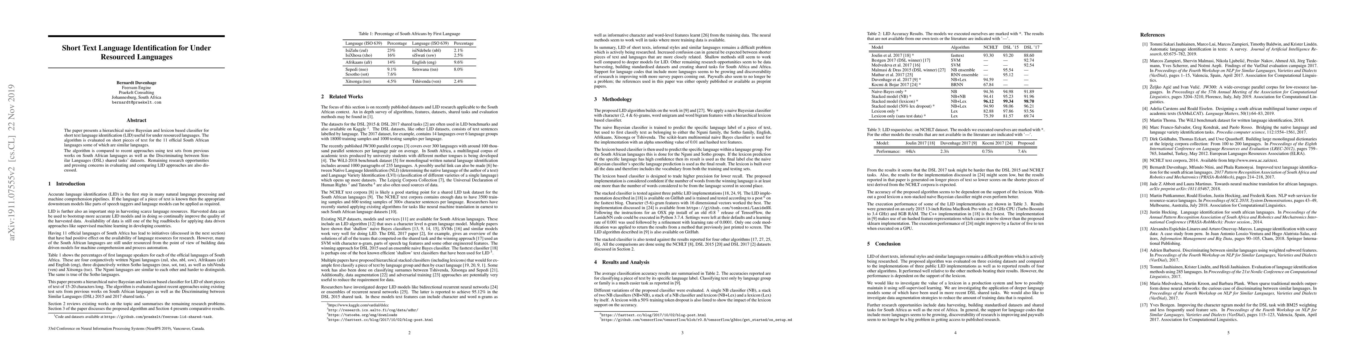 This paper introduces a hierarchical naive Bayesian and lexicon-based classifier for short text language identification, specifically for under-resourced languages, and evaluates it on South African languages. The proposed method is compared against other recent approaches, highlighting remaining research opportunities in this area.