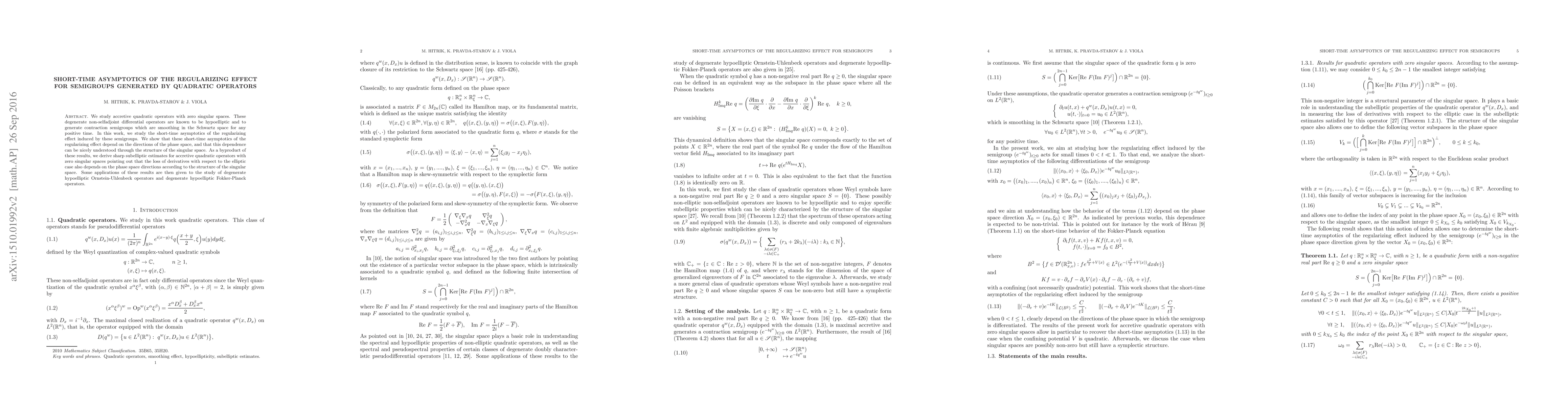 This paper investigates the short-time asymptotics of the regularizing effect generated by semigroups from accretive quadratic operators, revealing a dependence on phase space directions tied to the singular space structure. It also provides sharp subelliptic estimates for these operators and applies the findings to degenerate hypoelliptic Ornstein-Uhlenbeck and Fokker-Planck operators.
