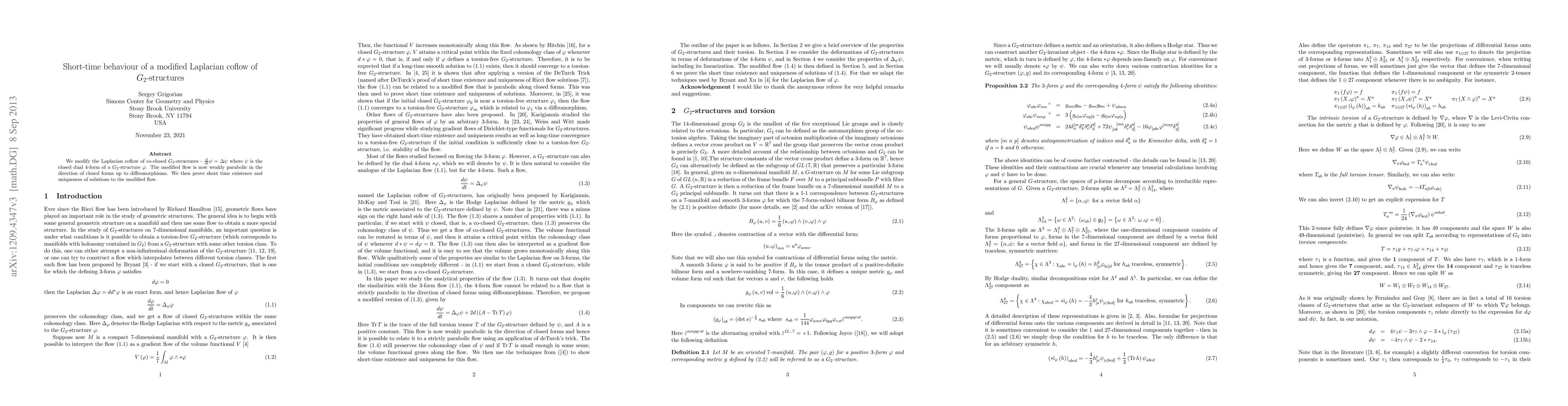 This paper modifies the Laplacian coflow for co-closed G2-structures, proving short-time existence and uniqueness of solutions to the modified parabolic flow. The focus is on the behavior of the modified flow in the direction of closed forms.