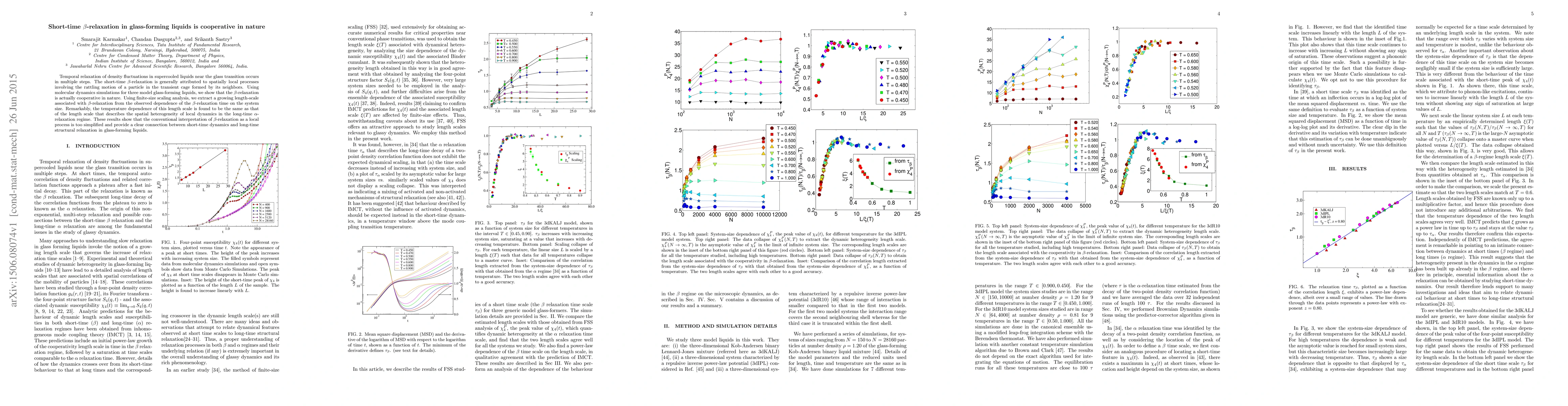 Temporal relaxation of density fluctuations in supercooled liquids near the glass transition occurs in multiple steps. The short-time $\beta$-relaxation is generally attributed to spatially local processes involving the rattling motion of a particle in the transient cage formed by its neighbors. Using molecular dynamics simulations for three model glass-forming liquids, we show that the $\beta$-relaxation is actually cooperative in nature. Using finite-size scaling analysis, we extract a growing length-scale associated with $\beta$-relaxation from the observed dependence of the $\beta$-relaxation time on the system size. Remarkably, the temperature dependence of this length scale is found to be the same as that of the length scale that describes the spatial heterogeneity of local dynamics in the long-time $\alpha$-relaxation regime. These results show that the conventional interpretation of $\beta$-relaxation as a local process is too simplified and provide a clear connection between short-time dynamics and long-time structural relaxation in glass-forming liquids.