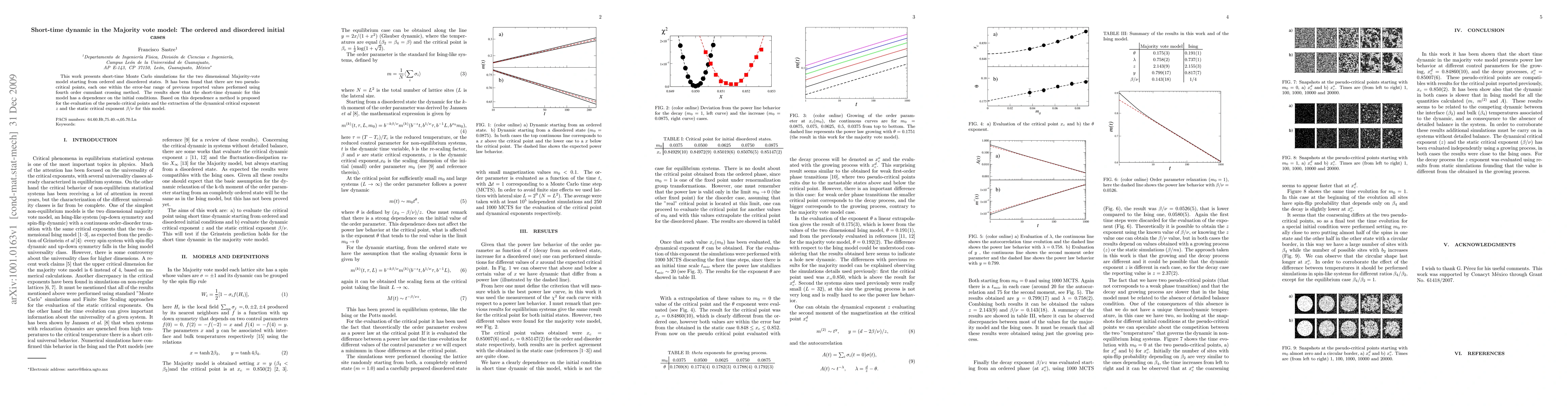 This study uses short-time Monte Carlo simulations to analyze the Majority-vote model's dynamics starting from ordered and disordered states, revealing two pseudo-critical points. A method is proposed to evaluate these points and extract the dynamical critical exponent $z$ and the static critical exponent $\beta/\nu$, showing that initial conditions affect the model's short-time dynamics.