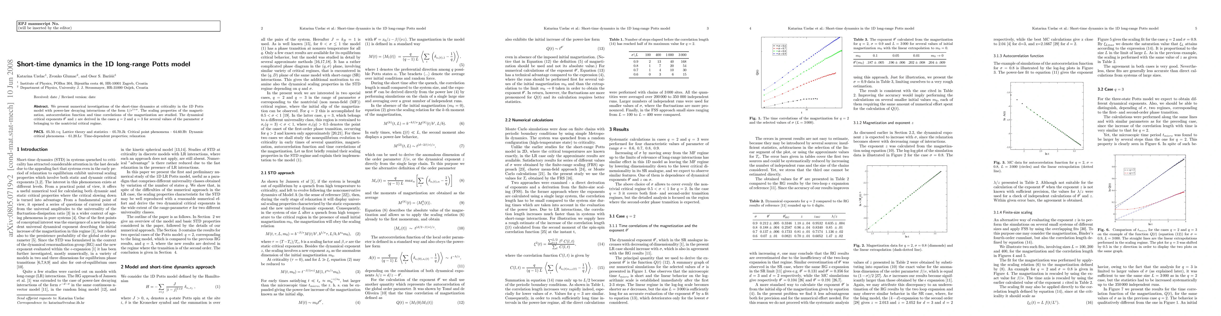 This paper investigates the short-time dynamics of the 1D long-range Potts model with power-law interactions, focusing on scaling properties and deriving dynamical critical exponents theta' and z for q=2 and q=3 across various values of the parameter σ in the nontrivial critical regime.