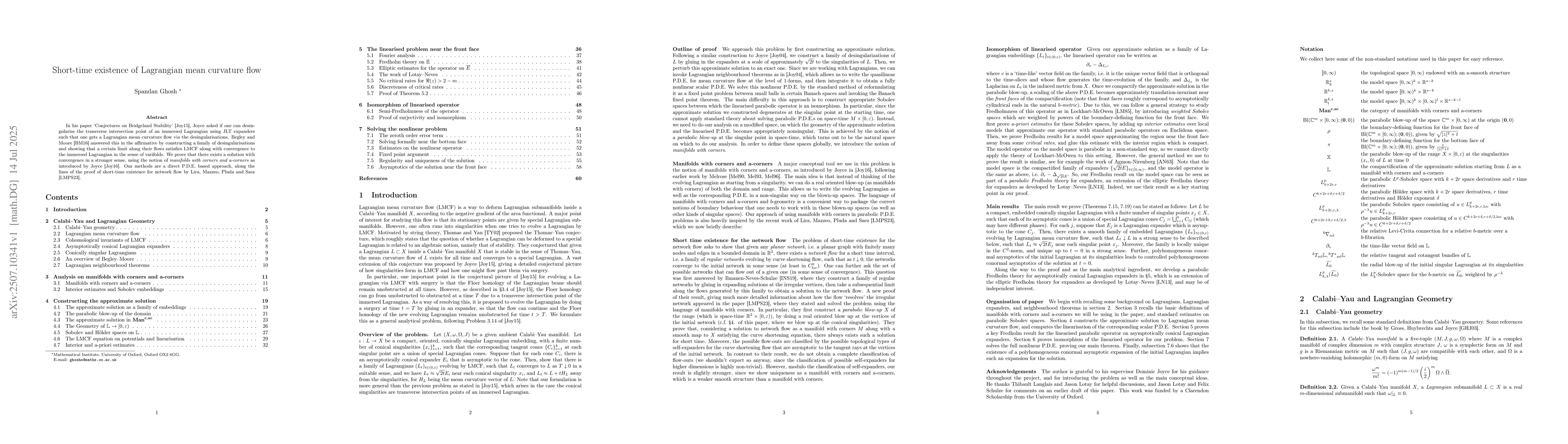 In his paper `Conjectures on Bridgeland Stability', Joyce asked if one can desingularise the transverse intersection point of an immersed Lagrangian using JLT expanders such that one gets a Lagrangian mean curvature flow via the desingularisations. Begley and Moore answered this in the affirmative by constructing a family of desingularisations and showing that a certain limit along their flows satisfies LMCF along with convergence to the immersed Lagrangian in the sense of varifolds. We prove that there exists a solution with convergence in a stronger sense, using the notion of manifolds with corners and a-corners as introduced by Joyce. Our methods are a direct P.D.E. based approach, along the lines of the proof of short-time existence for network flow by Lira, Mazzeo, Pluda and Saez.