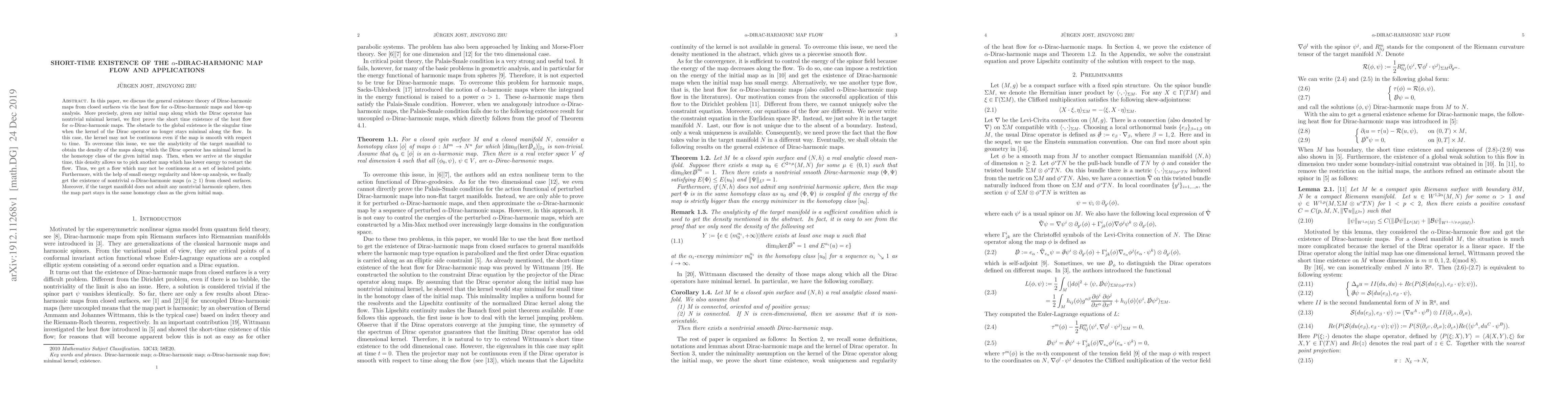 In this paper, we discuss the general existence theory of Dirac-harmonic maps from closed surfaces via the heat flow for $\alpha$-Dirac-harmonic maps and blow-up analysis. More precisely, given any initial map along which the Dirac operator has nontrivial minimal kernel, we first prove the short time existence of the heat flow for $\alpha$-Dirac-harmonic maps. The obstacle to the global existence is the singular time when the kernel of the Dirac operator no longer stays minimal along the flow. In this case, the kernel may not be continuous even if the map is smooth with respect to time. To overcome this issue, we use the analyticity of the target manifold to obtain the density of the maps along which the Dirac operator has minimal kernel in the homotopy class of the given initial map. Then, when we arrive at the singular time, this density allows us to pick another map which has lower energy to restart the flow. Thus, we get a flow which may not be continuous at a set of isolated points. Furthermore, with the help of small energy regularity and blow-up analysis, we finally get the existence of nontrivial $\alpha$-Dirac-harmonic maps ($\alpha\geq1$) from closed surfaces. Moreover, if the target manifold does not admit any nontrivial harmonic sphere, then the map part stays in the same homotopy class as the given initial map.