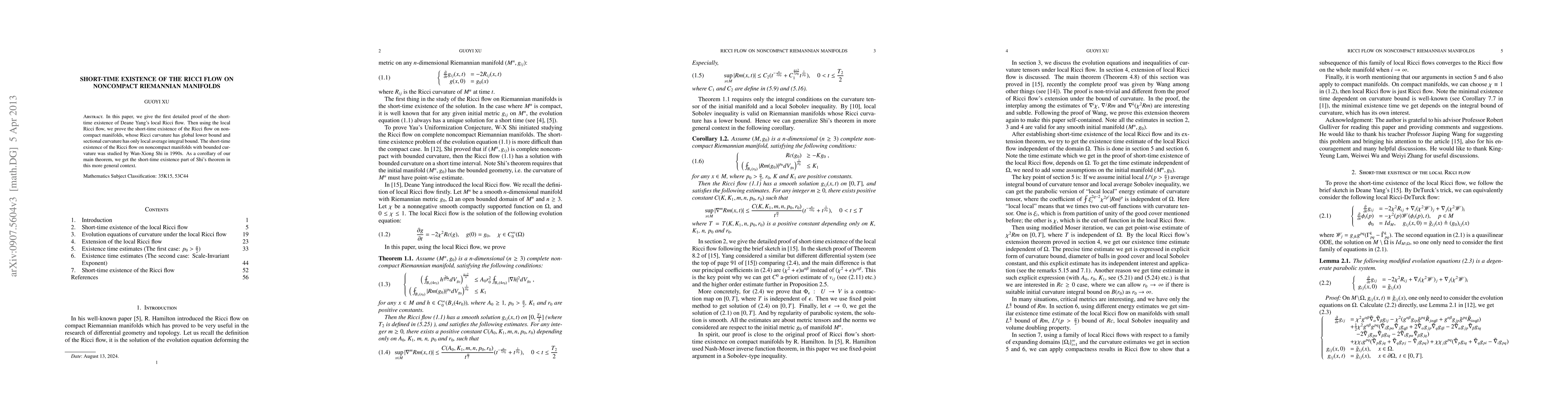 This paper provides a detailed proof of the short-time existence of Deane Yang's local Ricci flow and extends this to show short-time existence for the Ricci flow on noncompact manifolds with a global lower bound on Ricci curvature and a local average integral bound on sectional curvature.