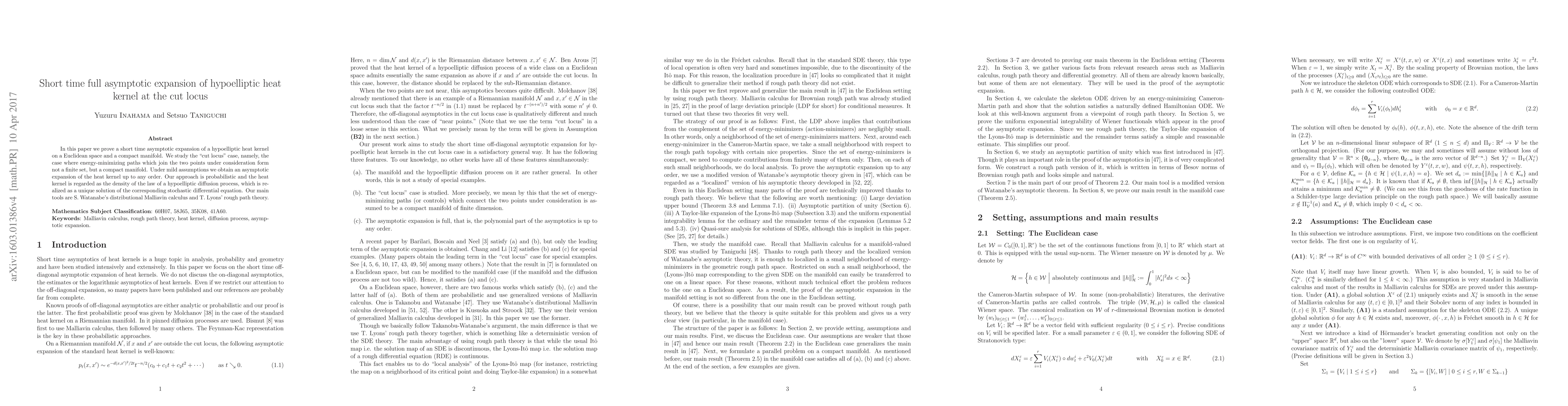 The paper employs probabilistic and rough path theory to analyze the short time asymptotic expansion of a hypoelliptic heat kernel at the cut locus, utilizing S. Watanabe's distributional Malliavin calculus and T. Lyons' rough path theory.