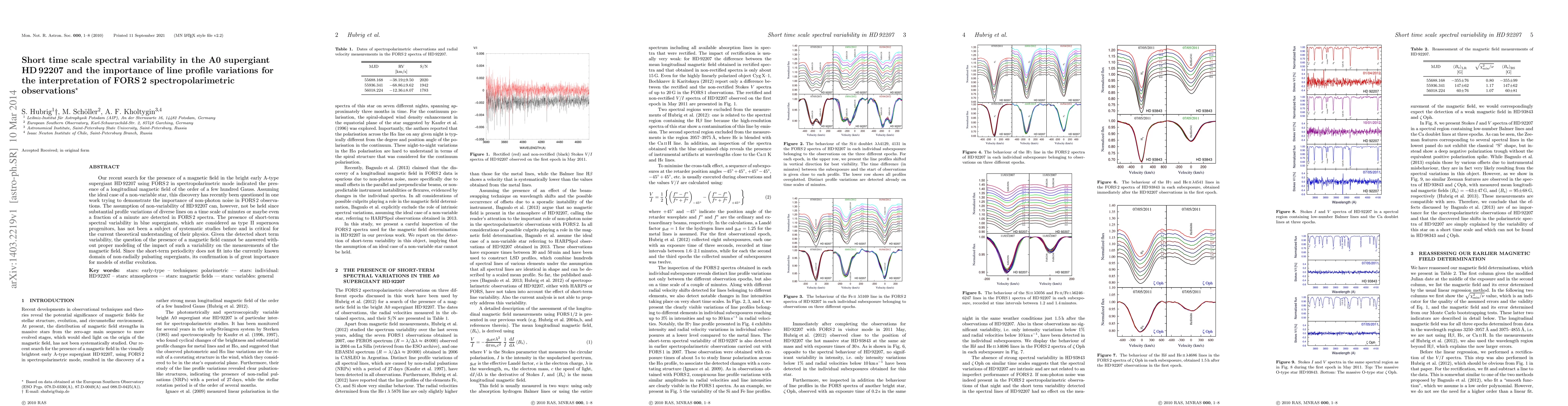 Our recent search for the presence of a magnetic field in the bright early A-type supergiant HD92207 using FORS2 in spectropolarimetric mode indicated the presence of a longitudinal magnetic field of the order of a few hundred Gauss. Assuming the ideal case of a non-variable star, this discovery has recently been questioned in one work trying to demonstrate the importance of non-photon noise in FORS2 observations. The assumption of non-variability of HD92207 can, however, not be held since substantial profile variations of diverse lines on a time scale of minutes or maybe even a fraction of a minute are detected in FORS2 spectra. The presence of short-term spectral variability in blue supergiants, which are considered as type II supernova progenitors, has not been a subject of systematic studies before and is critical for the current theoretical understanding of their physics. Given the detected short term variability, the question of the presence of a magnetic field cannot be answered without proper modeling of the impact of such a variability on the measurements of the magnetic field. Since the short-term periodicity does not fit into the currently known domain of non-radially pulsating supergiants, its confirmation is of great importance for models of stellar evolution.
