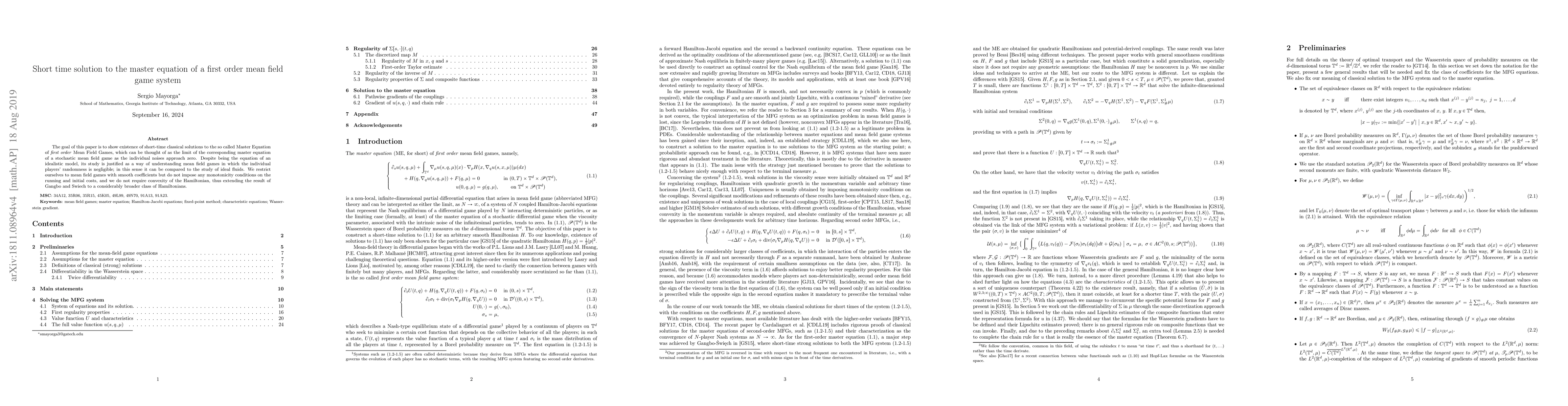 This paper establishes the existence of short-time classical solutions to the Master Equation of first-order Mean Field Games, extending previous results to a wider class of Hamiltonians without requiring convexity or monotonicity conditions. The study aims to understand scenarios where individual randomness is negligible, akin to ideal fluid dynamics.