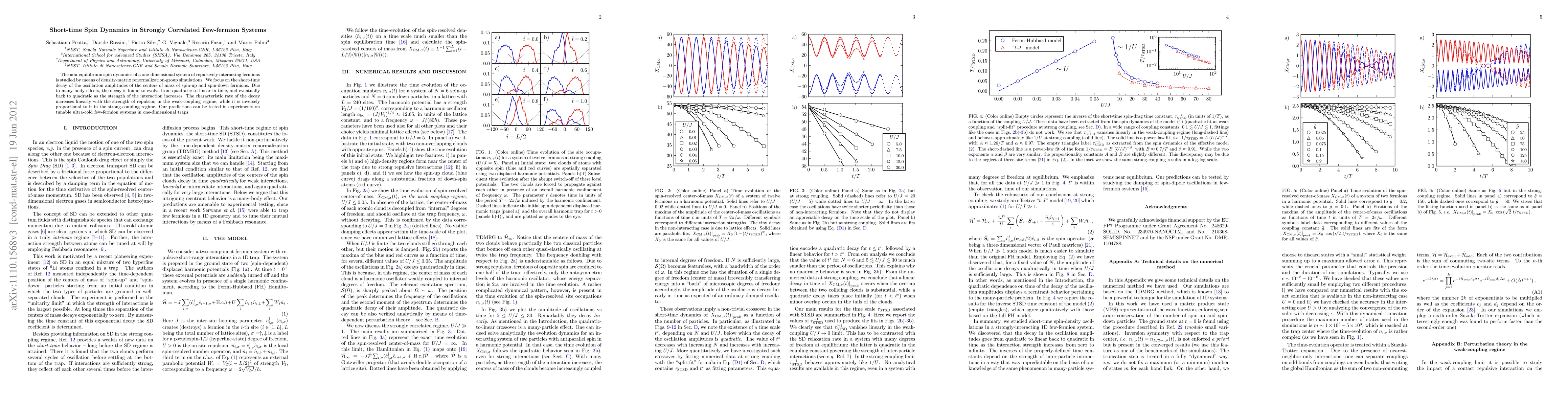 The non-equilibrium spin dynamics of a one-dimensional system of repulsively interacting fermions is studied by means of density-matrix renormalization-group simulations. We focus on the short-time decay of the oscillation amplitudes of the centers of mass of spin-up and spin-down fermions. Due to many-body effects, the decay is found to evolve from quadratic to linear in time, and eventually back to quadratic as the strength of the interaction increases. The characteristic rate of the decay increases linearly with the strength of repulsion in the weak-coupling regime, while it is inversely proportional to it in the strong-coupling regime. Our predictions can be tested in experiments on tunable ultra-cold few-fermion systems in one-dimensional traps.
