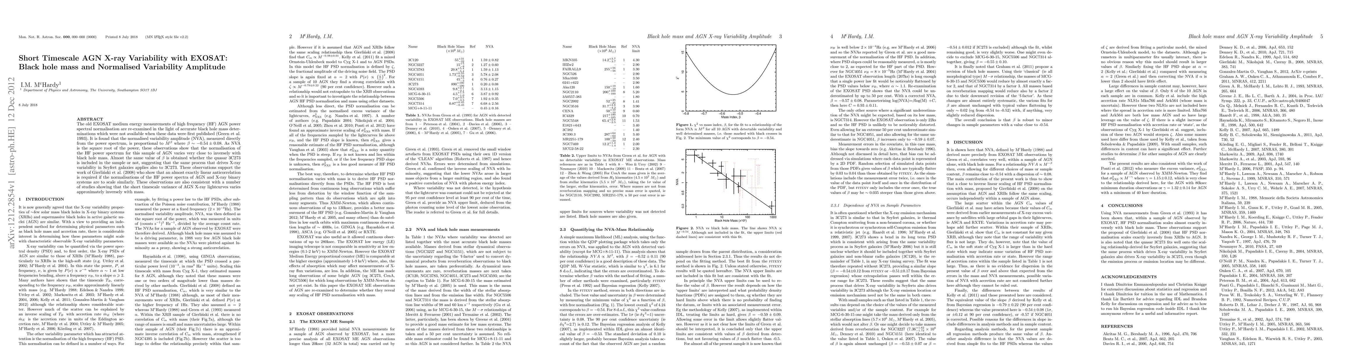 The old EXOSAT medium energy measurements of high frequency (HF) AGN power spectral normalisation are re-examined in the light of accurate black hole mass determinations which were not available when these data were first published (Green et al 1993). It is found that the normalised variability amplitude (NVA), measured directly from the power spectrum, is proportional to M^{beta} where beta ~ -0.54 +/- 0.08. As NVA is the square root of the power, these observations show that the normalisation of the HF power spectrum for this sample of AGN varies very close to inversely with black hole mass. Almost the same value of $\beta$ is obtained whether the quasar 3C273 is included in the sample or not, suggesting that the same process that drives X-ray variability in Seyfert galaxies applies also to 3C273. These observations support the work of Gierlinski et al (2008) who show that an almost exactly linear anticorrelation is required if the normalisations of the HF power spectra of AGN and X-ray binary systems are to scale similarly. These observations are also consistent with a number of studies showing that the short timescale variance of AGN X-ray lightcurves varies approximately inversely with mass.