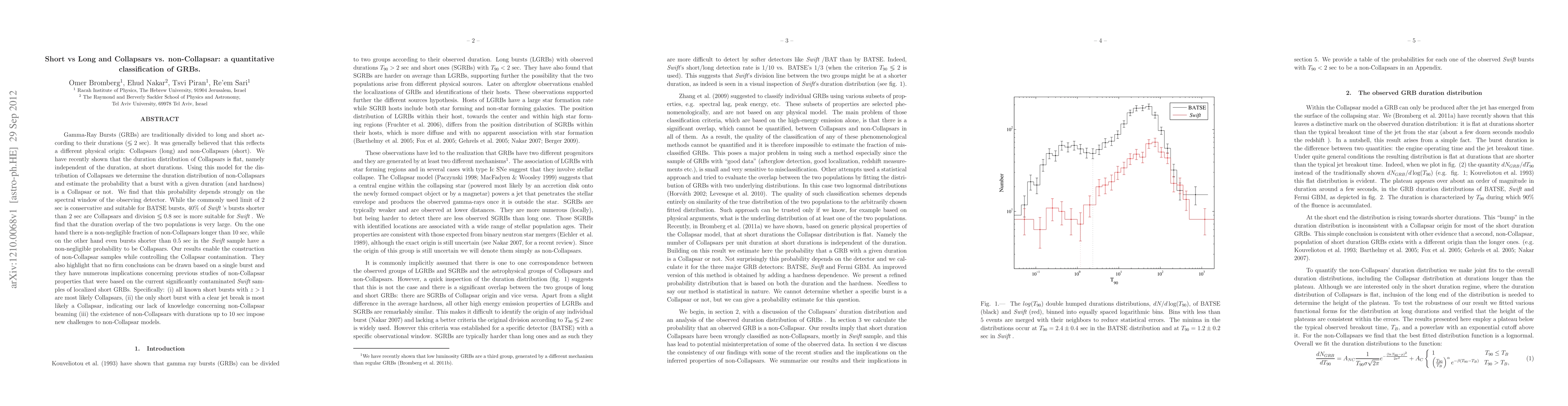 Research finds that short-duration gamma-ray bursts may not be distinct from long-duration collapsars, with a significant overlap between the two types of events, challenging previous studies on non-collapsar properties.