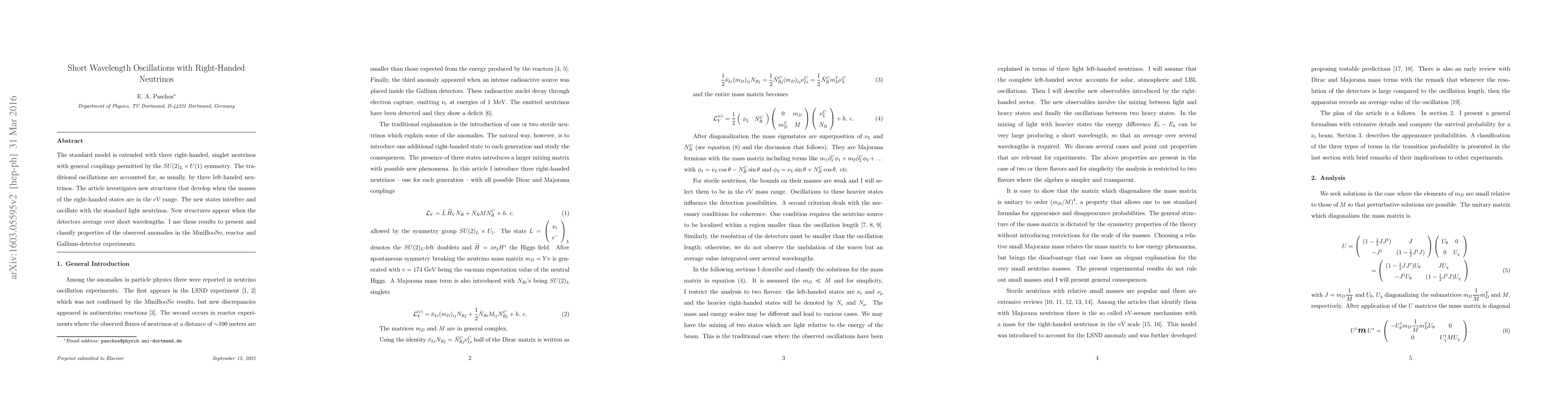 This paper extends the standard model to include three right-handed neutrinos with general couplings, exploring their oscillations and interference with left-handed neutrinos when right-handed masses are in the eV range. It classifies observed anomalies in MiniBooNe, reactor, and Gallium-detector experiments as resulting from short wavelength oscillations of these new states.