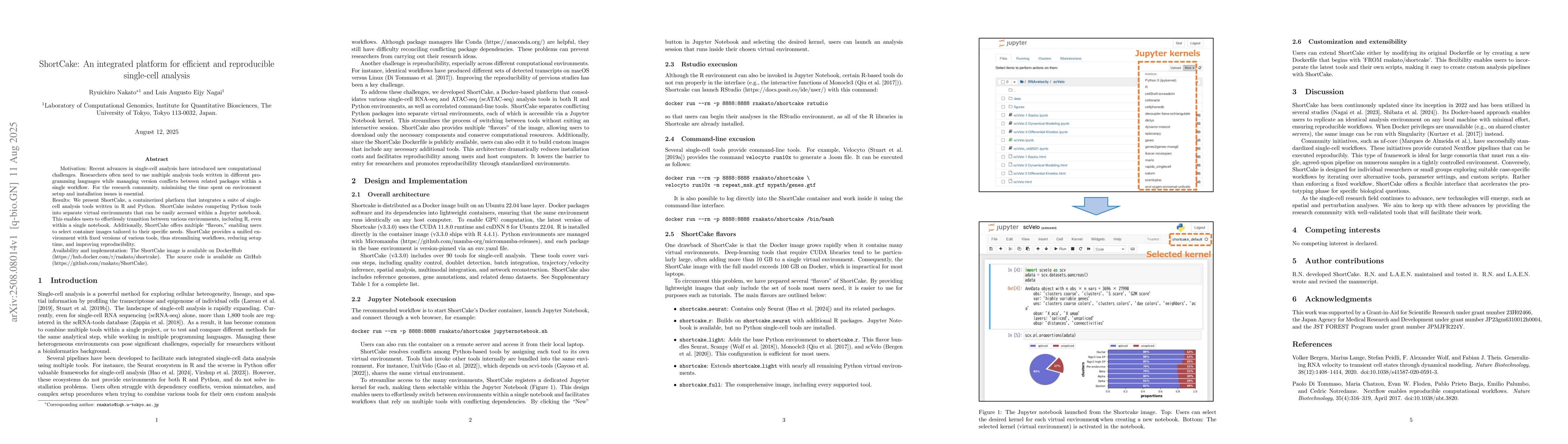 Motivation: Recent advances in single-cell analysis have introduced new computational challenges. Researchers often need to use multiple analysis tools written in different programming languages while managing version conflicts between related packages within a single workflow. For the research community, minimizing the time spent on environment setup and installation issues is essential. Results: We present ShortCake, a containerized platform that integrates a suite of single-cell analysis tools written in R and Python. ShortCake isolates competing Python tools into separate virtual environments that can be easily accessed within a Jupyter notebook. This enables users to effortlessly transition between various environments, including R, even within a single notebook. Additionally, ShortCake offers multiple ``flavors,'' enabling users to select container images tailored to their specific needs. ShortCake provides a unified environment with fixed versions of various tools, thus streamlining workflows, reducing setup time, and improving reproducibility. Availability and implementation: The ShortCake image is available on DockerHub (https://hub.docker.com/r/rnakato/shortcake). The source code is available on GitHub (https://github.com/rnakato/ShortCake).