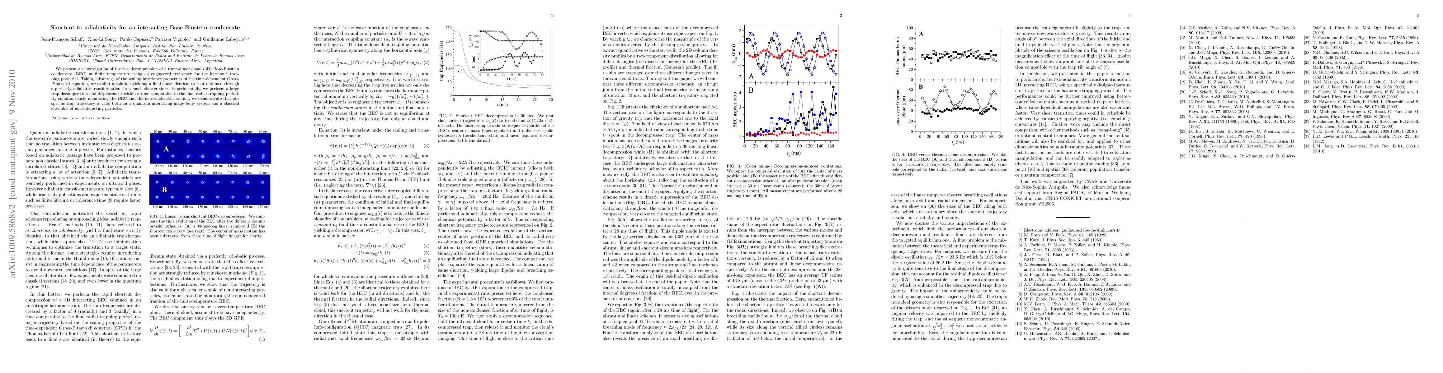 This paper explores a rapid decompression method for a three-dimensional Bose-Einstein condensate using an engineered trap trajectory, achieving adiabaticity in a shorter time than traditional methods. Experimentally, the method is validated for both interacting quantum systems and classical ensembles.