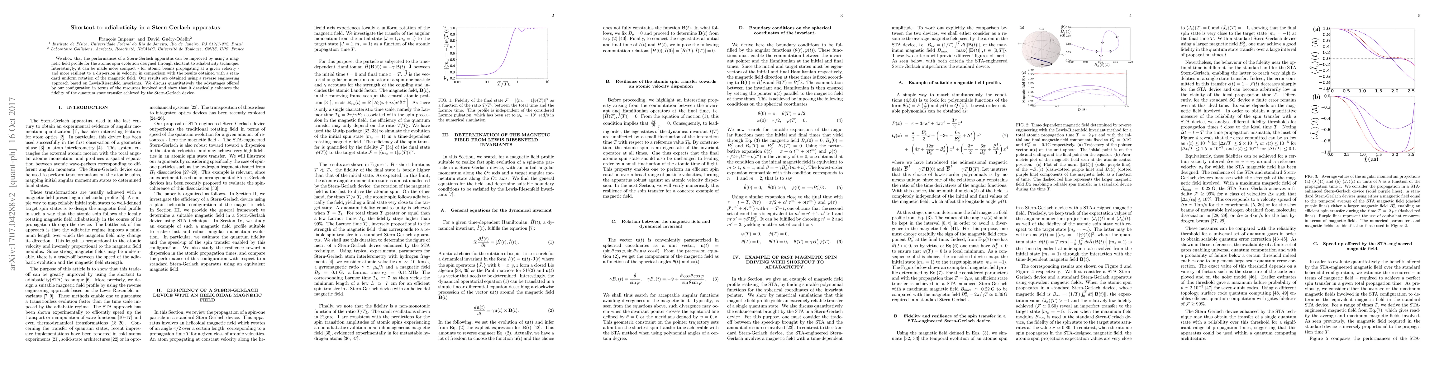 We show that the performances of a Stern-Gerlach apparatus can be improved by using a magnetic field profile for the atomic spin evolution designed through shortcut to adiabaticity technique. Interestingly, it can be made more compact - for atomic beams propagating at a given velocity - and more resilient to a dispersion in velocity, in comparison with the results obtained with a standard uniform rotation of the magnetic field. Our results are obtained using a reverse engineering approach based on Lewis-Riesenfeld invariants. We discuss quantitatively the advantages offered by our configuration in terms of the resources involved and show that it drastically enhances the fidelity of the quantum state transfer achieved by the Stern-Gerlach device.