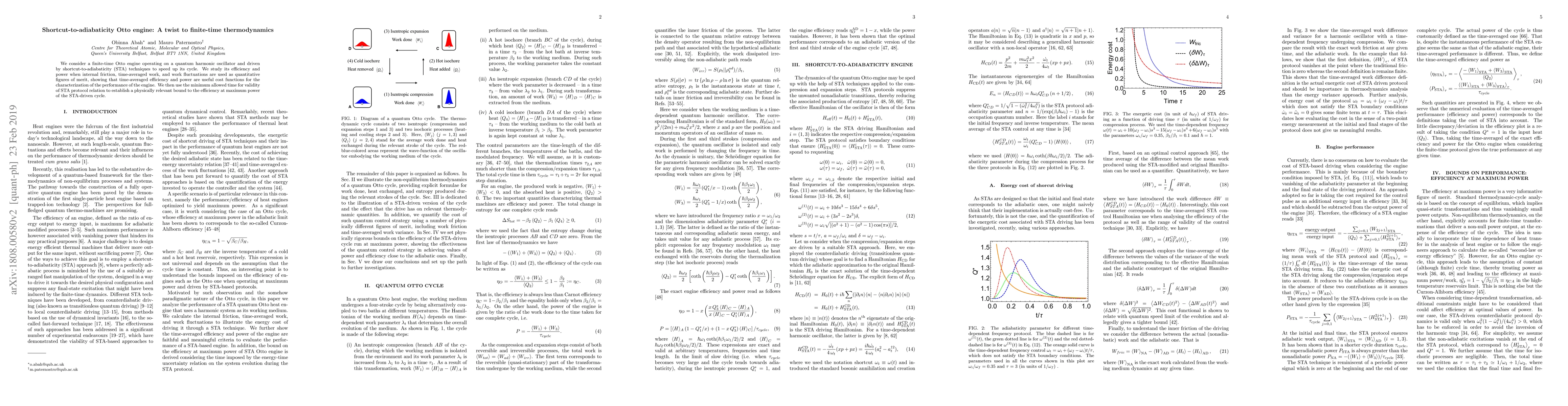 This paper explores a finite-time Otto engine based on a quantum harmonic oscillator, utilizing shortcut-to-adiabaticity techniques to accelerate its cycle. It evaluates the engine's efficiency and power, demonstrating that time-averaged efficiency and power are effective metrics for performance, and establishes a bound on efficiency at maximum power using the minimum allowed time for STA protocol validity.