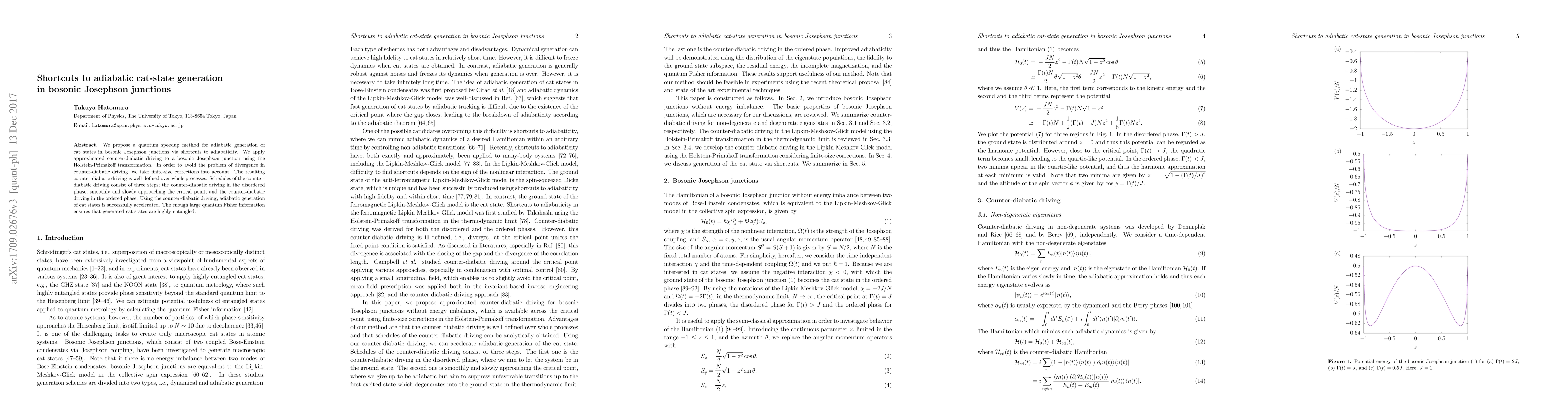 This paper proposes a quantum speedup method for generating cat states in bosonic Josephson junctions using shortcuts to adiabaticity. It employs approximated counter-diabatic driving with finite-size corrections to avoid divergence issues, achieving well-defined driving throughout the process and successfully accelerating adiabatic generation of highly entangled cat states.