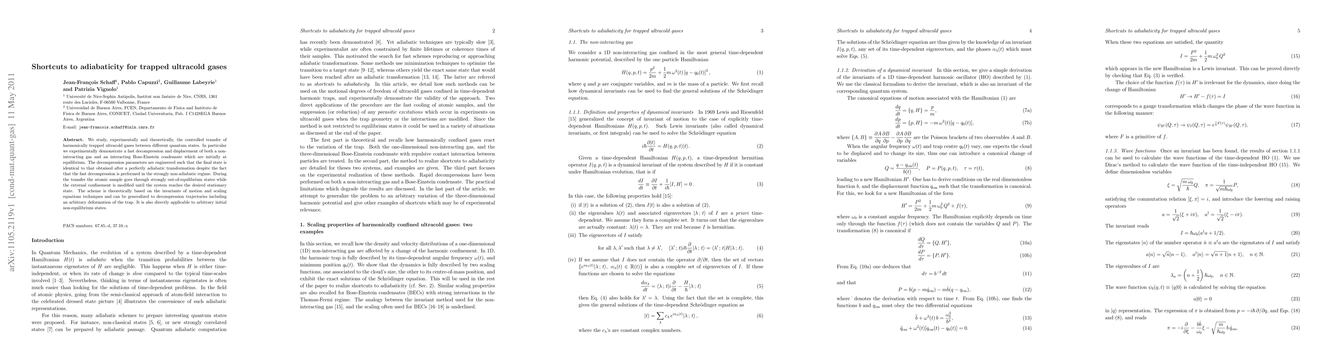 We study, experimentally and theoretically, the controlled transfer of harmonically trapped ultracold gases between different quantum states. In particular we experimentally demonstrate a fast decompression and displacement of both a non-interacting gas and an interacting Bose-Einstein condensate which are initially at equilibrium. The decompression parameters are engineered such that the final state is identical to that obtained after a perfectly adiabatic transformation despite the fact that the fast decompression is performed in the strongly non-adiabatic regime. During the transfer the atomic sample goes through strongly out-of-equilibrium states while the external confinement is modified until the system reaches the desired stationary state. The scheme is theoretically based on the invariants of motion and scaling equations techniques and can be generalized to decompression trajectories including an arbitrary deformation of the trap. It is also directly applicable to arbitrary initial non-equilibrium states.
