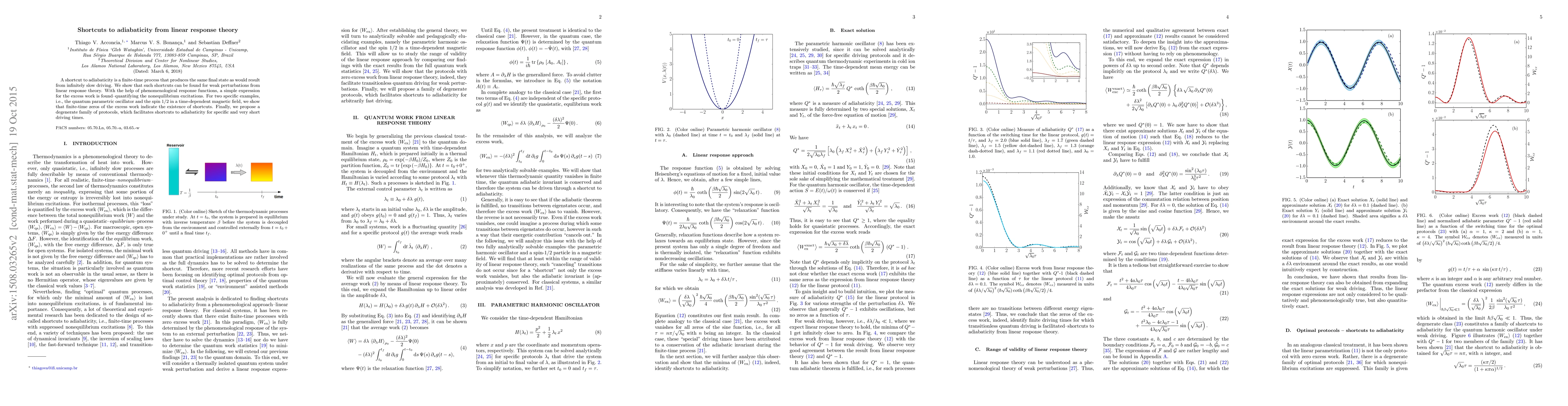 This paper proposes shortcuts to adiabaticity for weak perturbations using linear response theory, demonstrating that finite-time zeros of excess work indicate such shortcuts. It applies this to quantum parametric oscillators and spin-1/2 systems, and introduces a family of protocols for very short driving times.