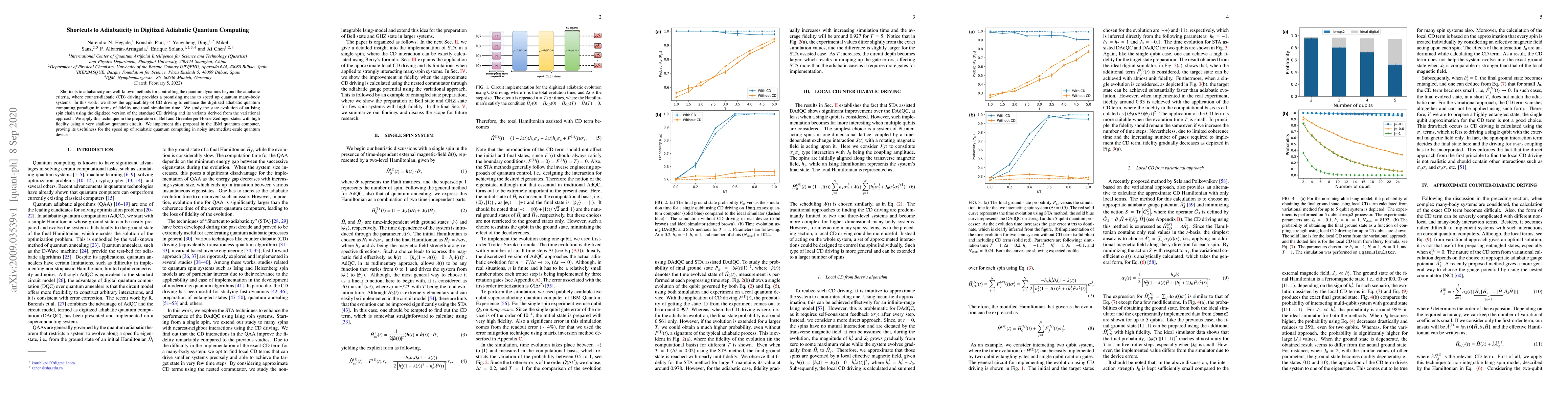 This paper explores the application of counter-diabatic driving to enhance digitized adiabatic quantum computing, demonstrating improved fidelity and reduced simulation time for preparing Bell and Greenberger-Horne-Zeilinger states on an IBM quantum computer. The study shows that this technique can significantly speed up quantum computations in noisy intermediate-scale devices.