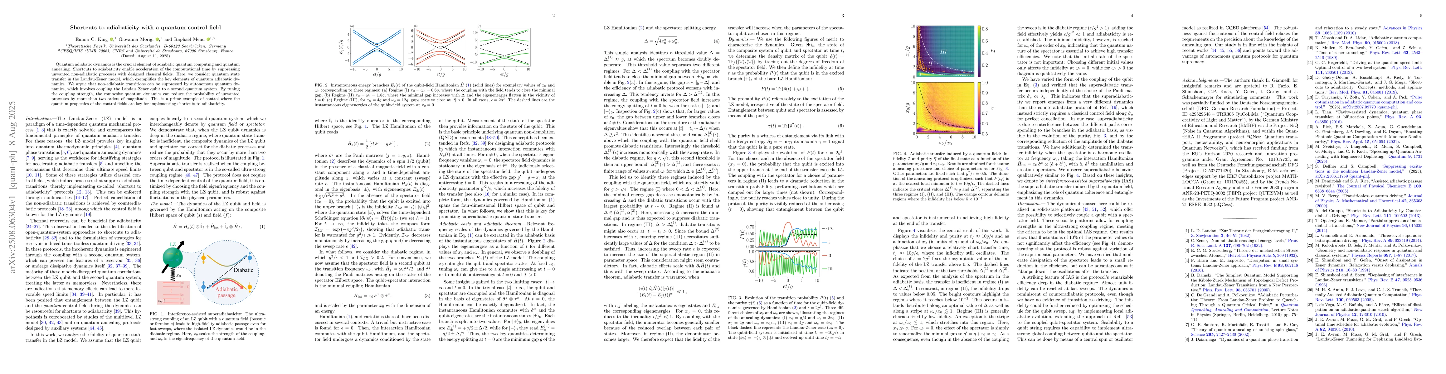 The research investigates shortcuts to adiabaticity in quantum systems using a quantum control field, specifically focusing on the Landau-Zener model for quantum state transfer. The study examines the suppression of non-adiabatic transitions by coupling the Landau-Zener qubit to a second quantum system (spectator field) and tuning the coupling strength.