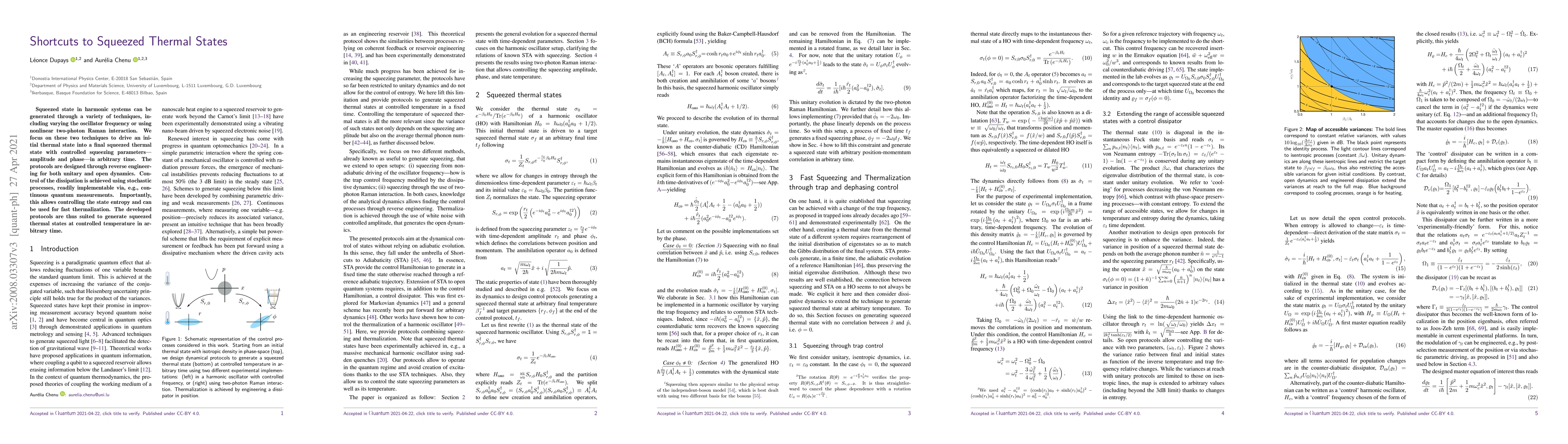 This paper explores techniques to transform thermal states into squeezed thermal states using varying oscillator frequency and nonlinear two-photon Raman interactions. The protocols developed allow for precise control over squeezing parameters and dissipation, enabling fast thermalization and generation of squeezed states at specified temperatures.