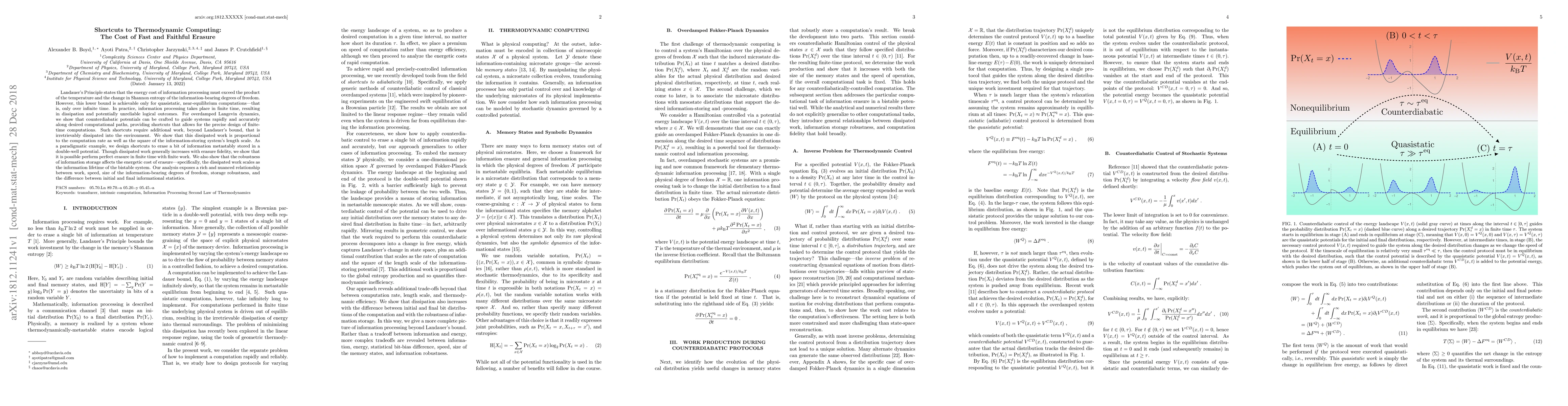 The paper introduces a method for crafting counterdiabatic potentials to design shortcuts for finite-time computations, providing a detailed analysis of the dissipated work and its relationship to computation rate, system size, and information storage robustness.