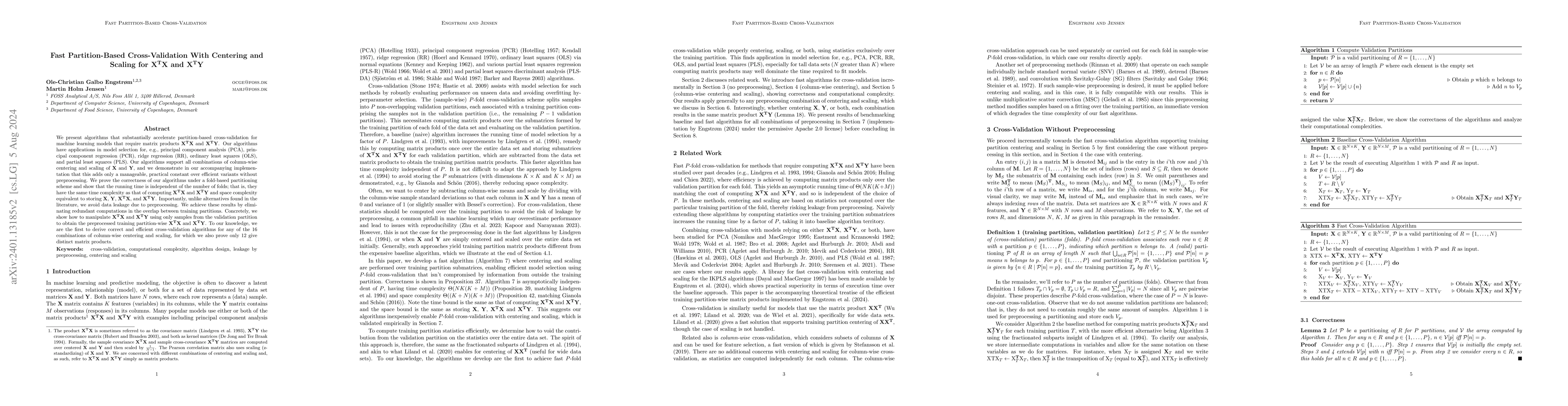 This research proposes three efficient algorithms to compute $\mathbf{X}^{\mathbf{T}}\mathbf{X}$ and $\mathbf{X}^{\mathbf{T}}\mathbf{Y}$ matrices for cross-validation in predictive models without full recomputation, offering significant speedups over traditional methods while maintaining correctness and avoiding data leakage. The algorithms also support column-wise centering and scaling for enhanced performance.