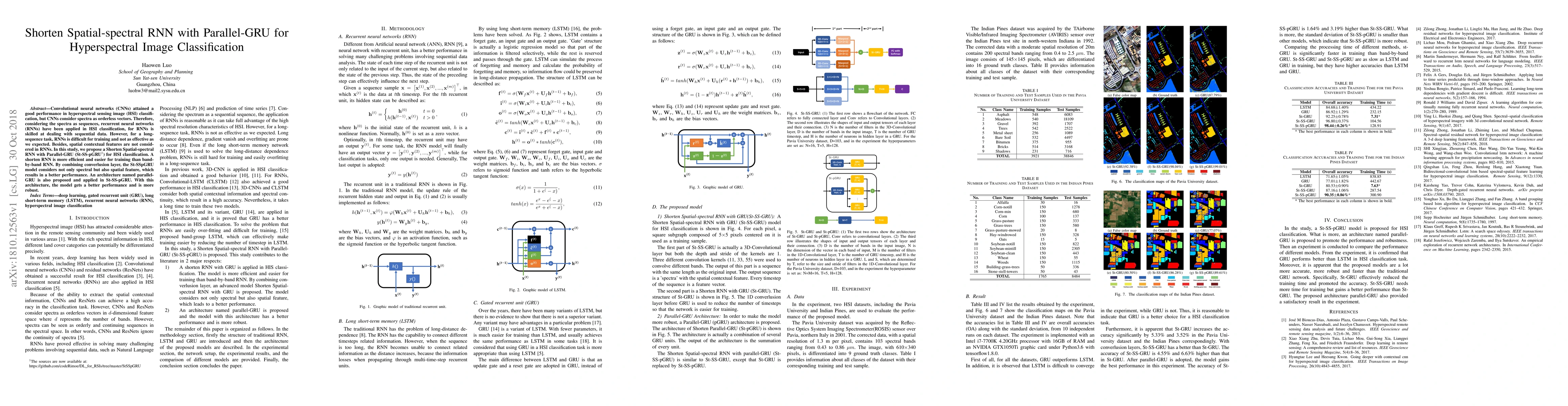 This research is significant as it proposes a more accurate, robust, and faster model for HSI classification compared to traditional GRU networks, which can have applications in remote sensing, environmental monitoring, and agriculture.