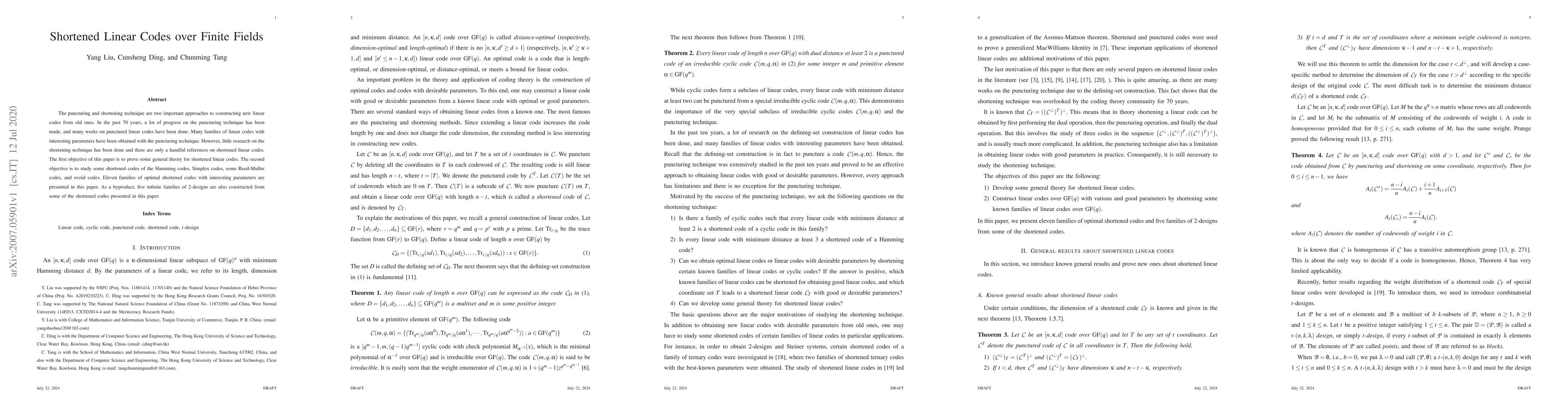 A systematic approach to shortened codes was employed, including a thorough analysis of linear codes and their properties.