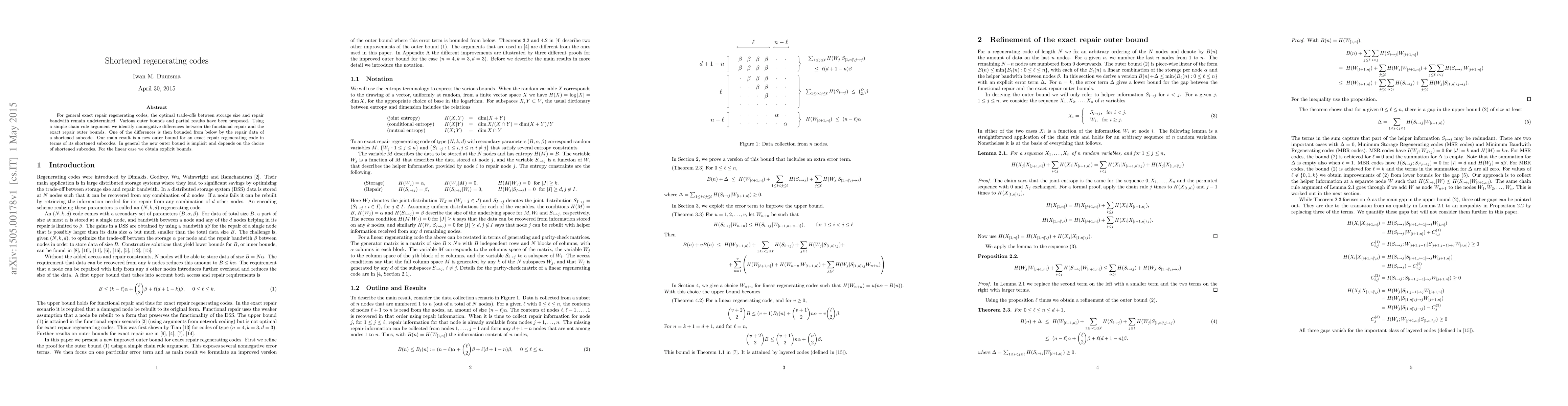 For general exact repair regenerating codes, the optimal trade-offs between storage size and repair bandwith remain undetermined. Various outer bounds and partial results have been proposed. Using a simple chain rule argument we identify nonnegative differences between the functional repair and the exact repair outer bounds. One of the differences is then bounded from below by the repair data of a shortened subcode. Our main result is a new outer bound for an exact repair regenerating code in terms of its shortened subcodes. In general the new outer bound is implicit and depends on the choice of shortened subcodes. For the linear case we obtain explicit bounds.