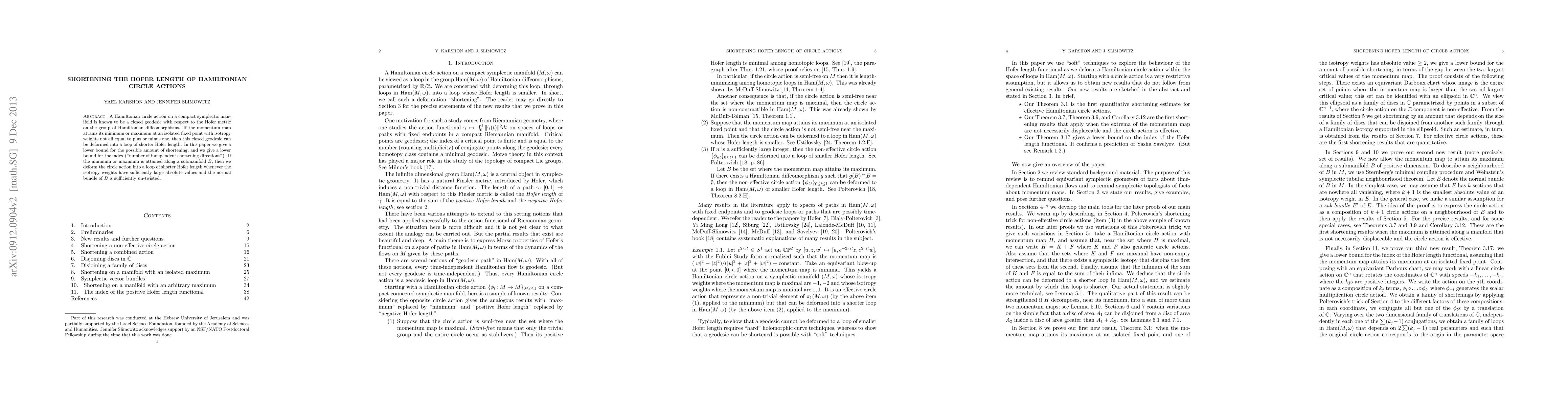 This paper investigates Hamiltonian circle actions on compact symplectic manifolds, demonstrating that if the momentum map reaches its extremum at an isolated fixed point, the associated closed geodesic can be shortened in Hofer length. It provides bounds for the potential shortening and the number of independent directions for such deformations.