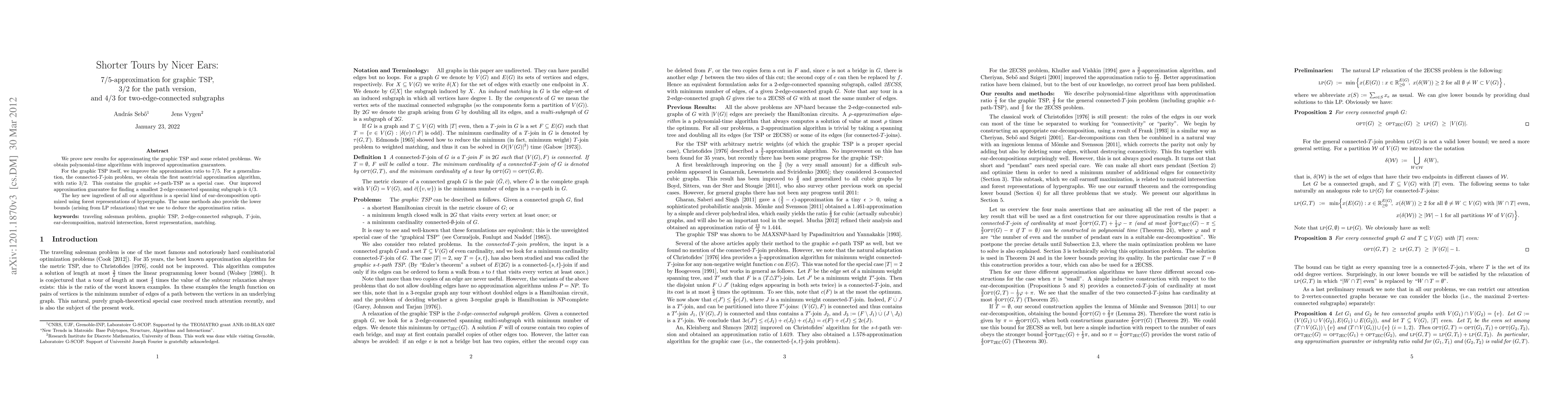 We prove new results for approximating the graphic TSP and some related problems. We obtain polynomial-time algorithms with improved approximation guarantees. For the graphic TSP itself, we improve the approximation ratio to 7/5. For a generalization, the connected-$T$-join problem, we obtain the first nontrivial approximation algorithm, with ratio 3/2. This contains the graphic $s$-$t$-path-TSP as a special case. Our improved approximation guarantee for finding a smallest 2-edge-connected spanning subgraph is 4/3. The key new ingredient of all our algorithms is a special kind of ear-decomposition optimized using forest representations of hypergraphs. The same methods also provide the lower bounds (arising from LP relaxations) that we use to deduce the approximation ratios.
