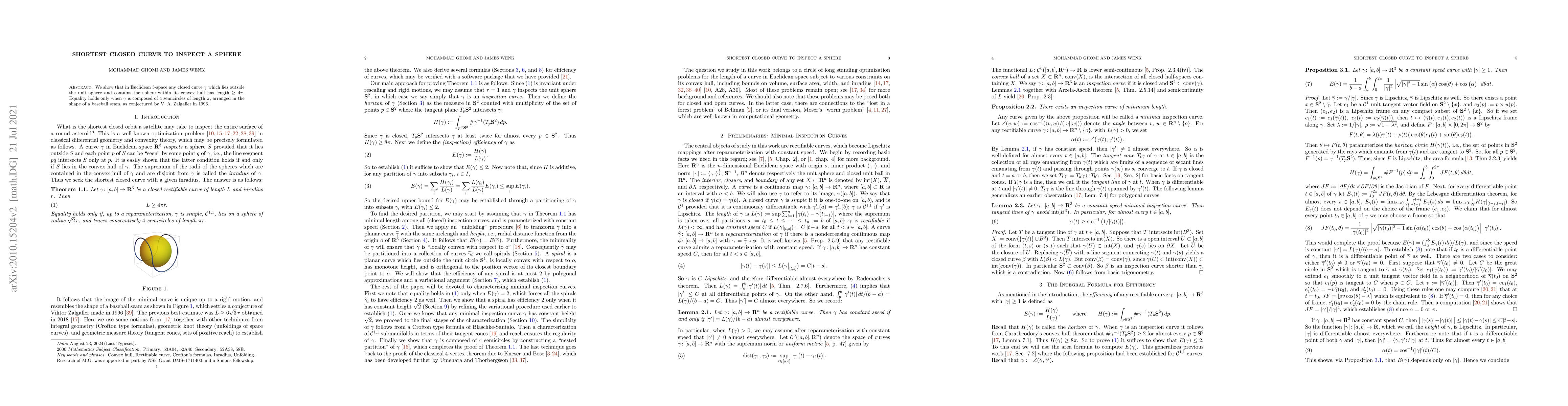 A closed curve outside a unit sphere that contains it within its convex hull has a minimum length of 4π. This length is achieved when the curve is composed of four semicircles in a specific arrangement.