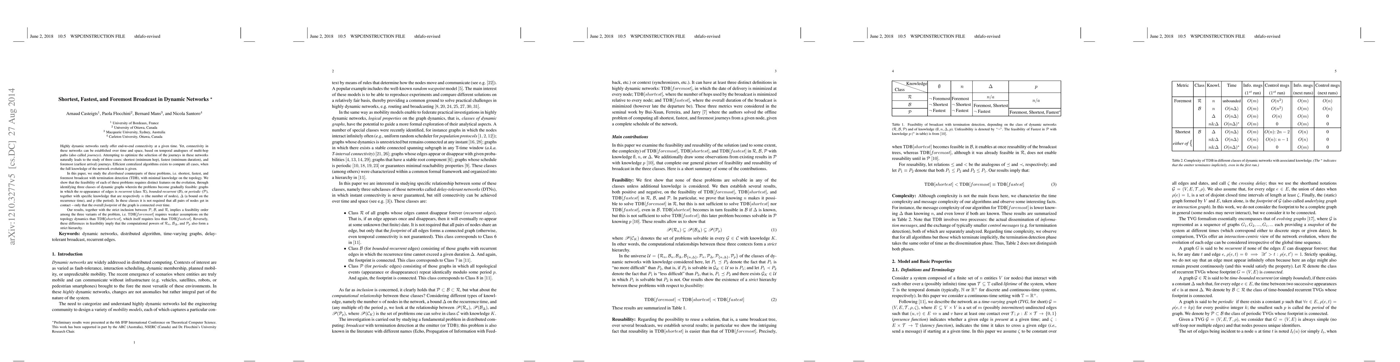 This paper explores distributed algorithms for shortest, fastest, and foremost broadcast in dynamic networks with minimal topology knowledge. It identifies three classes of dynamic graphs—recurrent, bounded-recurrent, and periodic—each with specific knowledge requirements, establishing a feasibility hierarchy where foremost broadcast is the most feasible and fastest the least.