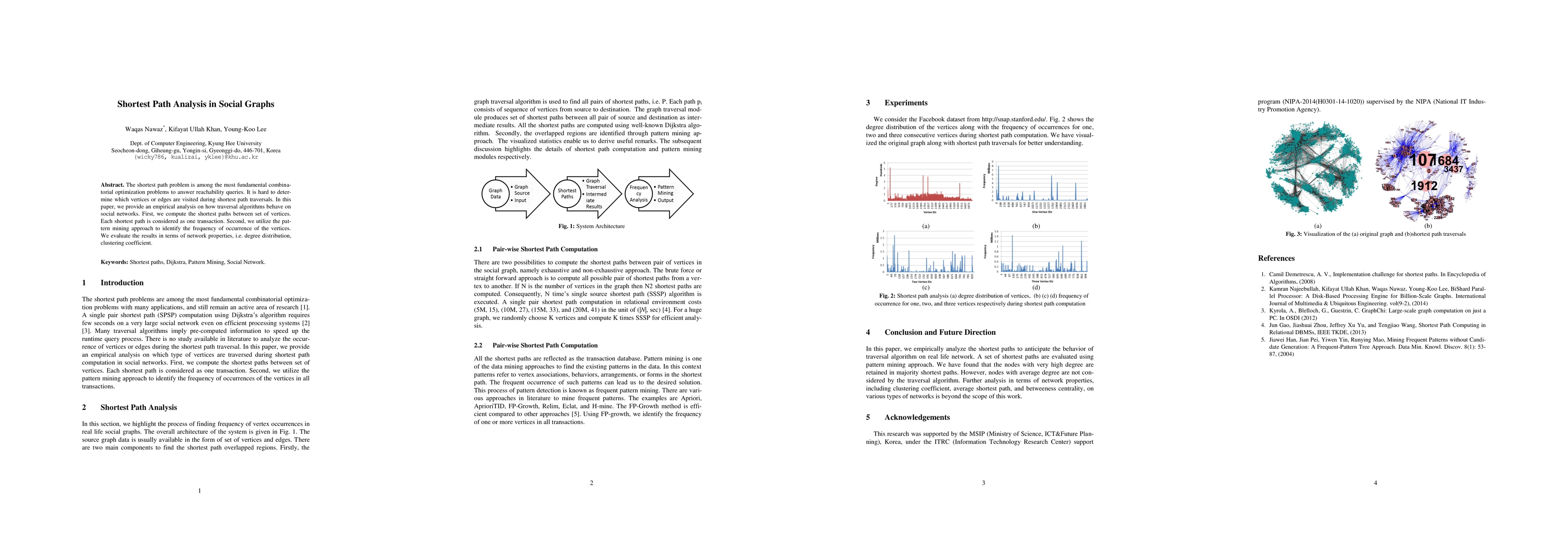 This paper empirically analyzes shortest path traversal algorithms on social networks, computing shortest paths and identifying frequent vertex occurrences using pattern mining. Results are evaluated based on network properties like degree distribution and clustering coefficient.