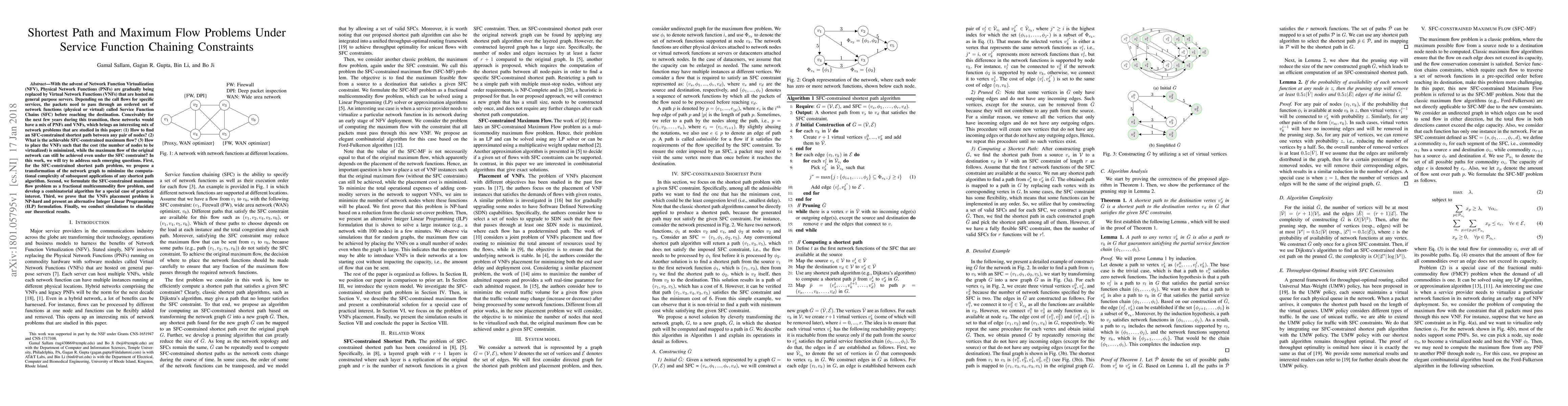 This paper addresses the challenges of Service Function Chaining (SFC) in Network Function Virtualization (NFV) environments, focusing on shortest path, maximum flow, and VNF placement problems. It proposes a network graph transformation for SFC-constrained shortest path, formulates the SFC-constrained maximum flow as a fractional multicommodity flow problem, and presents an ILP formulation for the NP-hard VNF placement problem.