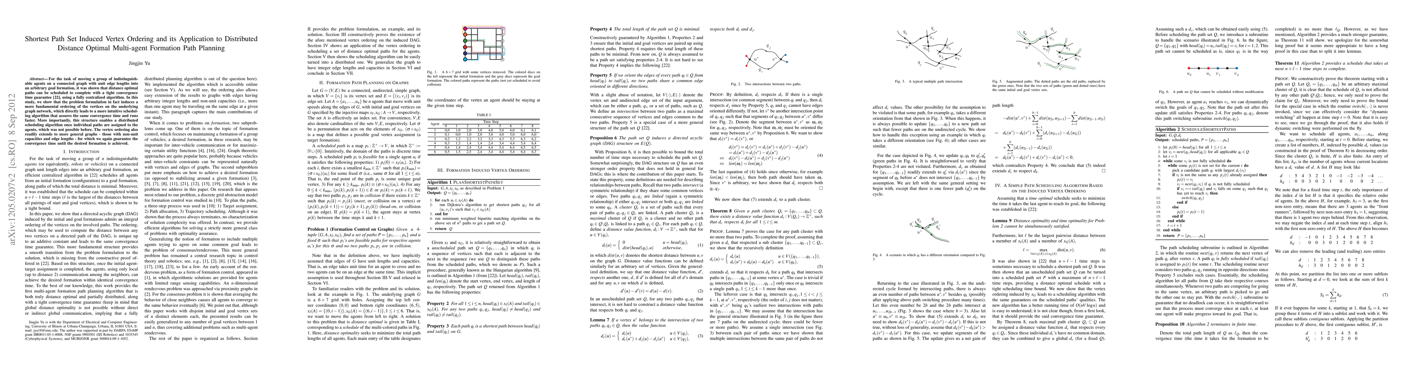 This paper proposes a shortest path set induced vertex ordering for optimal multi-agent formation path planning, enabling a faster centralized and a novel distributed scheduling algorithm that guarantees convergence time on general graphs with non-unit edge lengths.