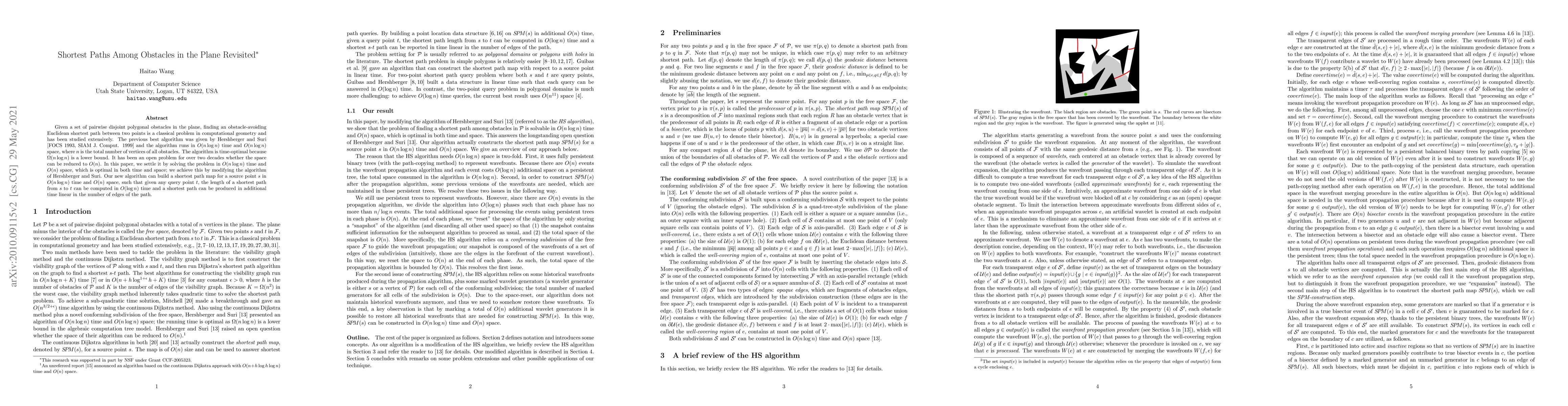 This paper presents a new algorithm for finding the shortest path between two points in the plane while avoiding a set of polygonal obstacles. It improves upon the previous best algorithm by Hershberger and Suri, achieving optimal $O(n\log n)$ time and $O(n)$ space complexity.