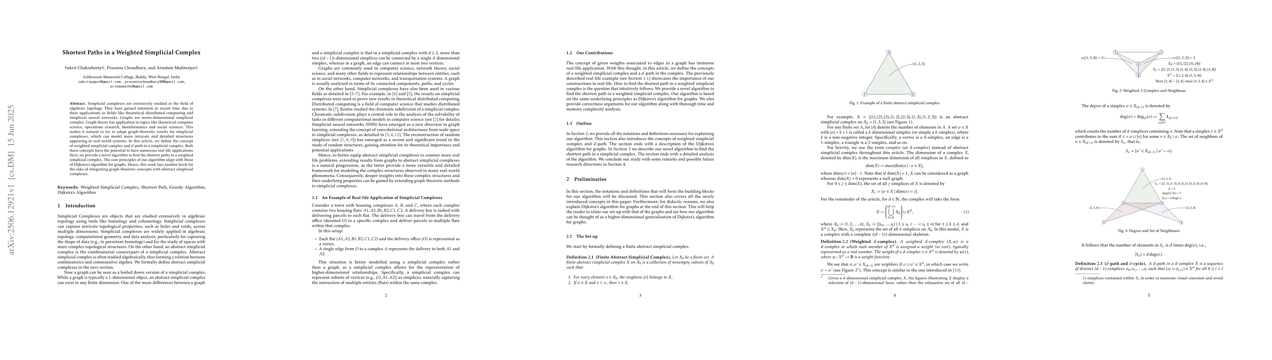 This paper introduces the concept of weighted simplicial complexes and defines $d$-paths within them, aiming to adapt graph-theoretic results for more complex structures. It presents a novel algorithm, inspired by Dijkstra's algorithm, to find shortest paths in these complexes, facilitating the integration of graph theory with abstract simplicial complexes for various real-life applications.