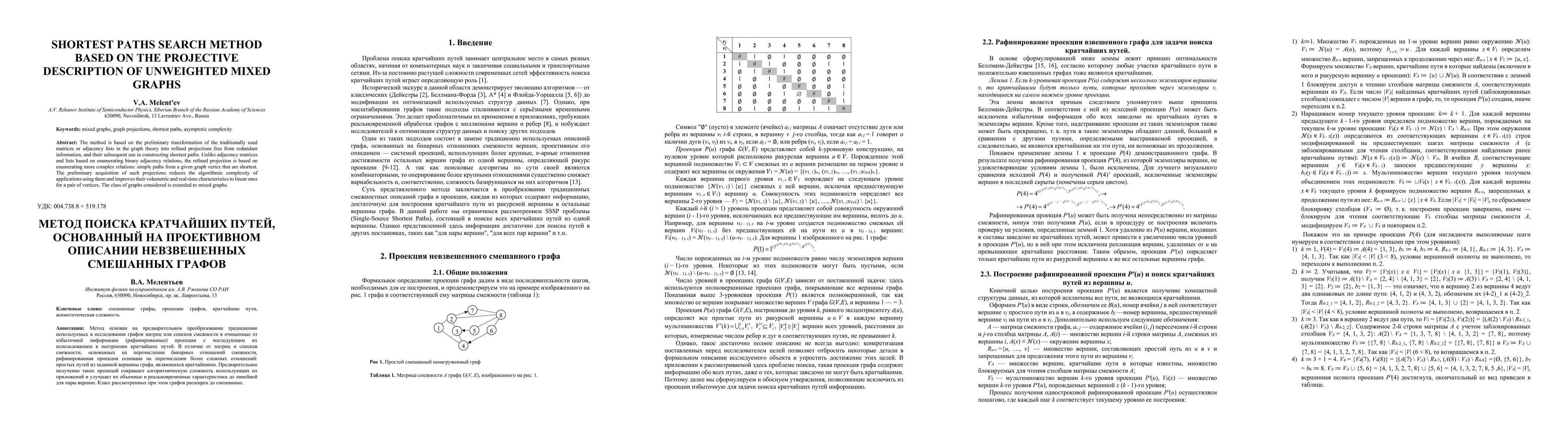 The method is based on the preliminary transformation of the traditionally used matrices or adjacency lists in the graph theory into refined projections free from redundant information, and their subsequent use in constructing shortest paths. Unlike adjacency matrices and lists based on enumerating binary adjacency relations, the refined projection is based on enumerating more complex relations: simple paths from a given graph vertex that are shortest. The preliminary acquisition of such projections reduces the algorithmic complexity of applications using them and improves their volumetric and real-time characteristics to linear ones for a pair of vertices. The class of graphs considered is extended to mixed graphs.