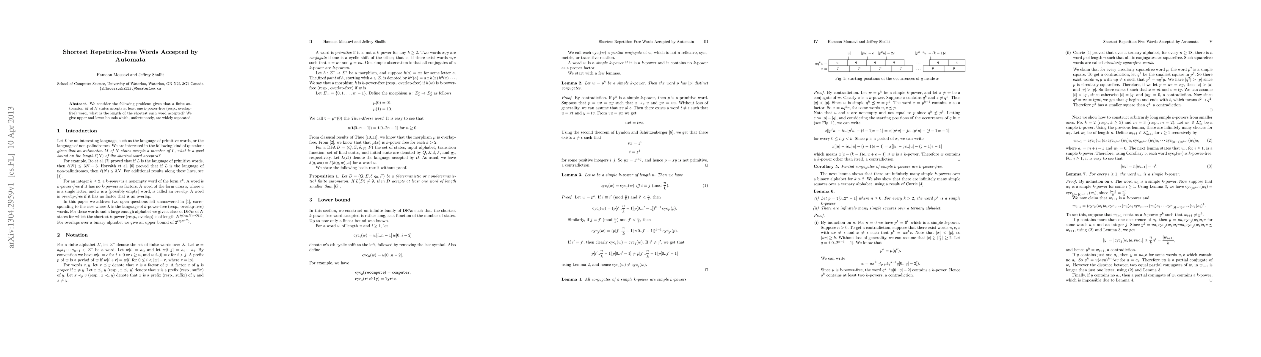 We consider the following problem: given that a finite automaton $M$ of $N$ states accepts at least one $k$-power-free (resp., overlap-free) word, what is the length of the shortest such word accepted? We give upper and lower bounds which, unfortunately, are widely separated.