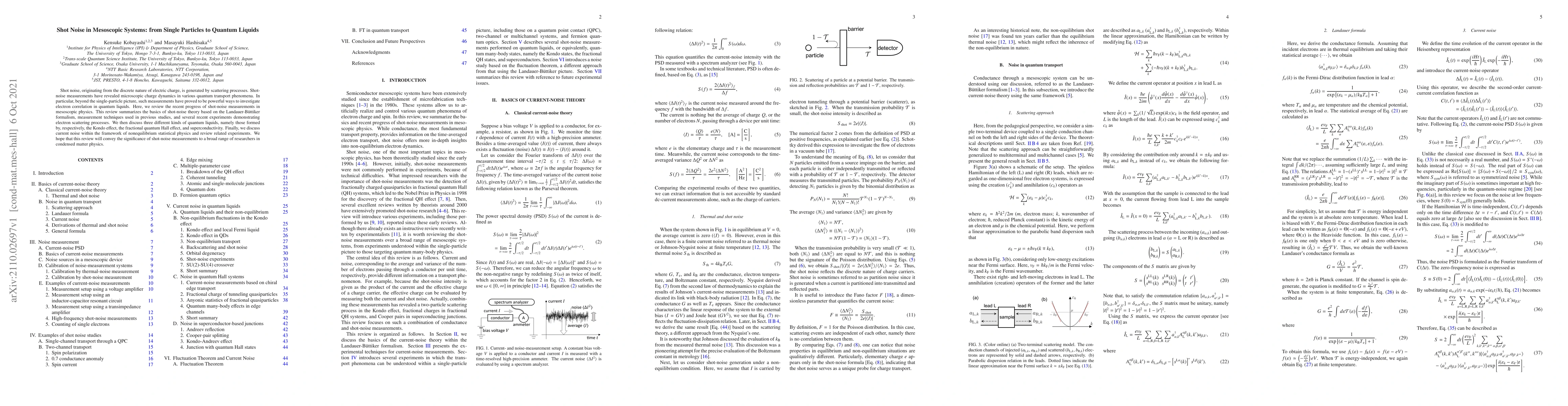 This paper reviews recent advancements in shot-noise measurements in mesoscopic physics, summarizing theoretical foundations, experimental techniques, and applications in quantum liquids formed by Kondo effects, fractional quantum Hall states, and superconductivity. It highlights the role of shot noise in probing electron correlations and dynamics in quantum systems.