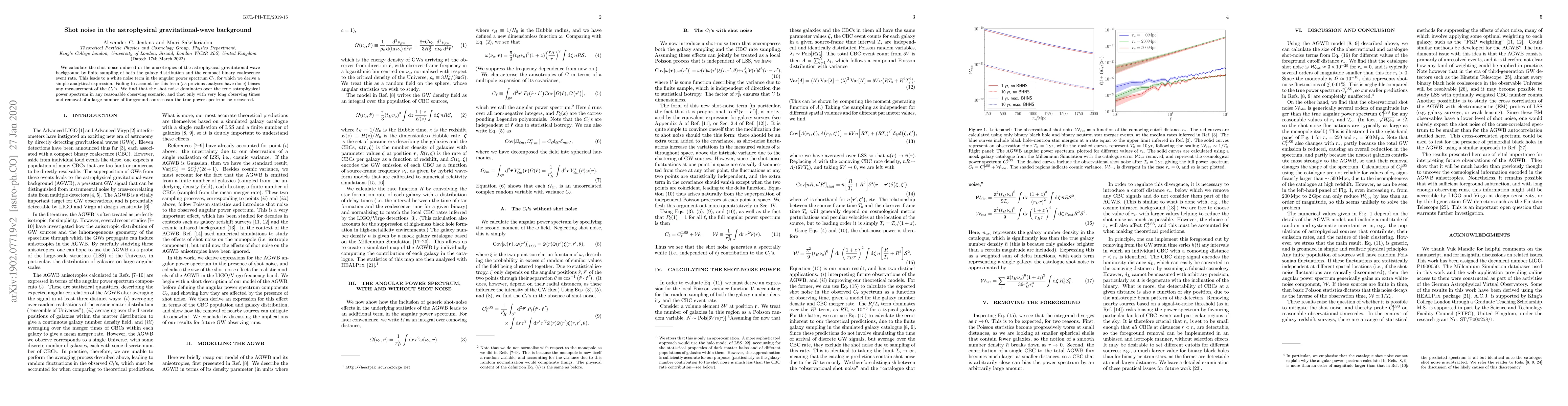 This paper quantifies the shot noise in the astrophysical gravitational-wave background due to finite sampling of galaxies and binary coalescence events, showing it introduces a scale-invariant bias in the angular power spectrum. The study concludes that only with extensive observation times and foreground source removal can the true cosmological power spectrum be discerned.