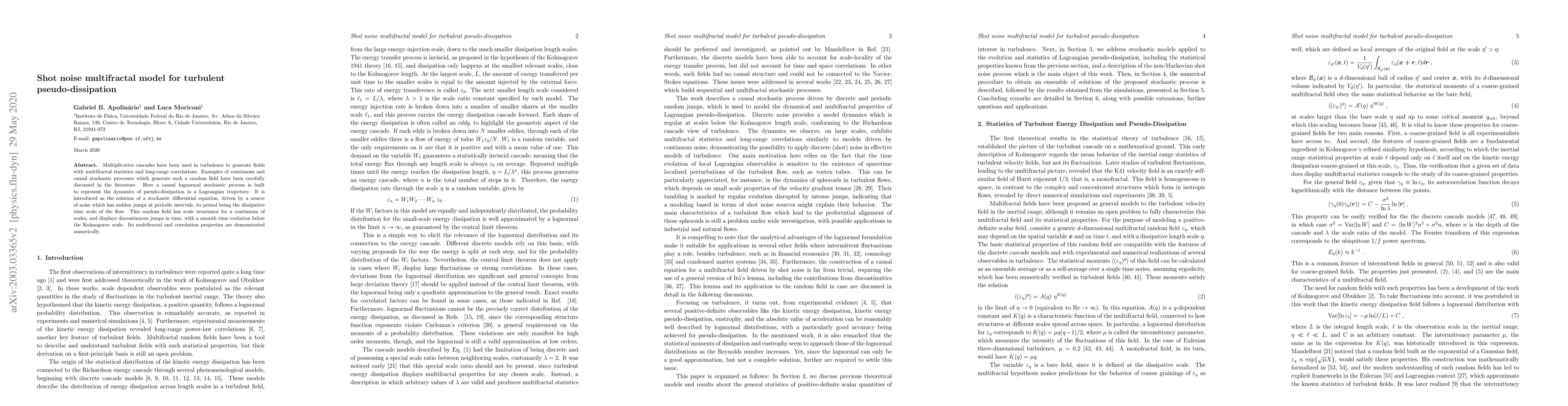 This paper develops a causal lognormal stochastic process to model turbulent pseudo-dissipation in Lagrangian trajectories, driven by a shot noise source with periodic jumps. The resulting random field exhibits multifractal statistics and scale invariance, validated through numerical analysis of its multifractal and correlation properties.