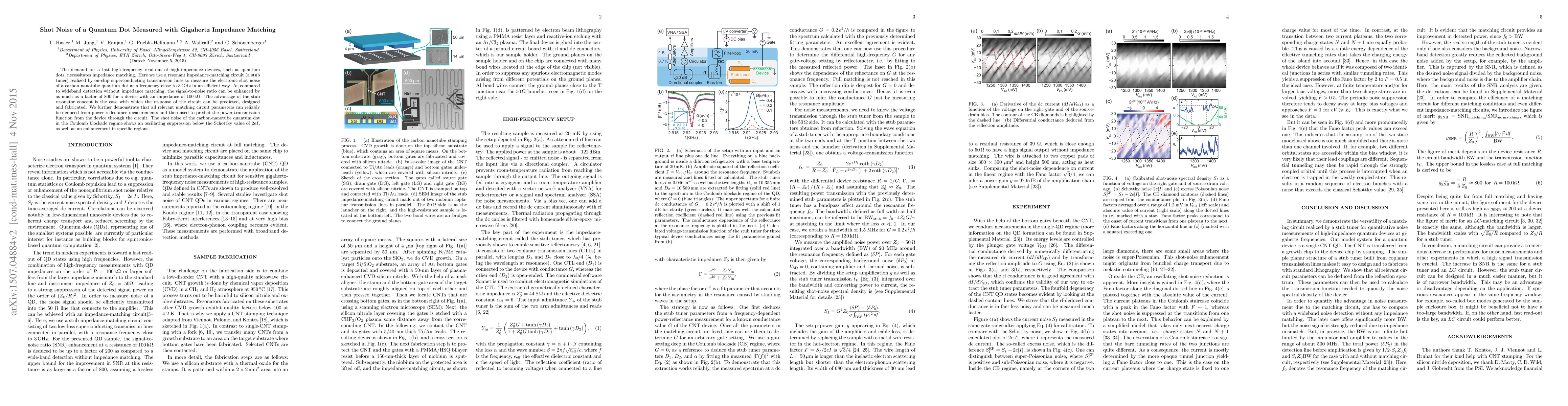 This paper investigates the electronic shot noise of a carbon nanotube quantum dot at GHz frequencies using a resonant impedance matching circuit. The study demonstrates a significant improvement in signal-to-noise ratio by up to 800 times compared to wide-band detection, highlighting the effectiveness of the stub tuner design.