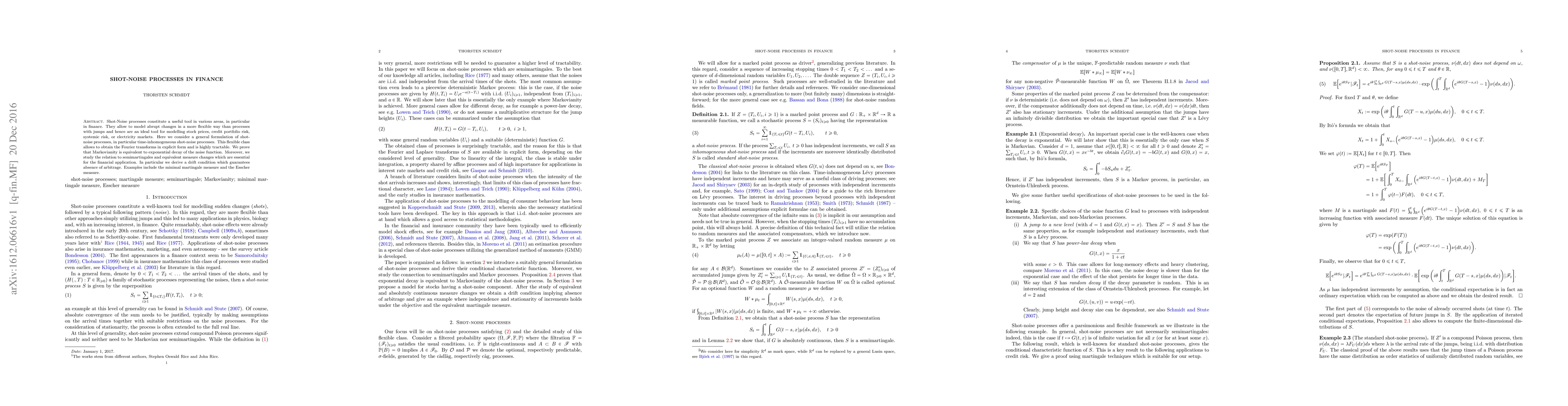 This paper explores shot-noise processes as flexible models for abrupt changes in financial markets, deriving explicit Fourier transforms for time-inhomogeneous versions. It establishes the equivalence between Markovianity and exponential decay of the noise function, and provides a drift condition to ensure no arbitrage, highlighting applications to stock prices and systemic risk.